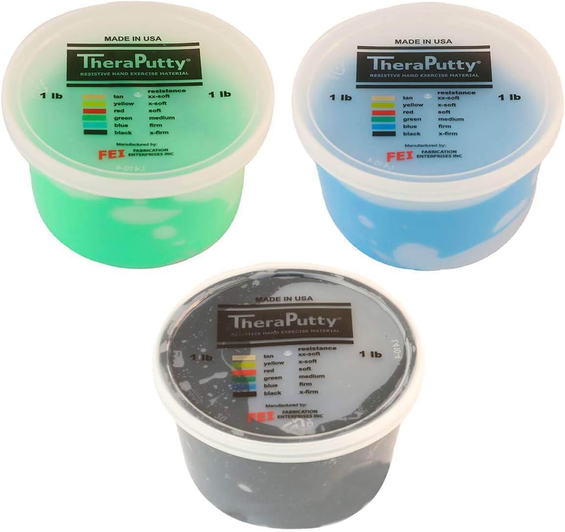 - SIX DIFFERENT FIRMNESS LEVELS - Regardless of your hand strength, there is a TheraPutty option for you! TheraPutty is available in 6 color-coded firmness levels ranging from xx-soft (tan) to x-firm (black).