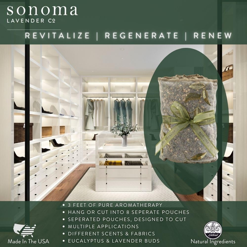 Sonoma Lavender, Dried Eucalyptus and Lavender Sachets by The Yard for Drawers and Closets, Natural Air Freshener for Home, Car, Bag, Room, and Closet