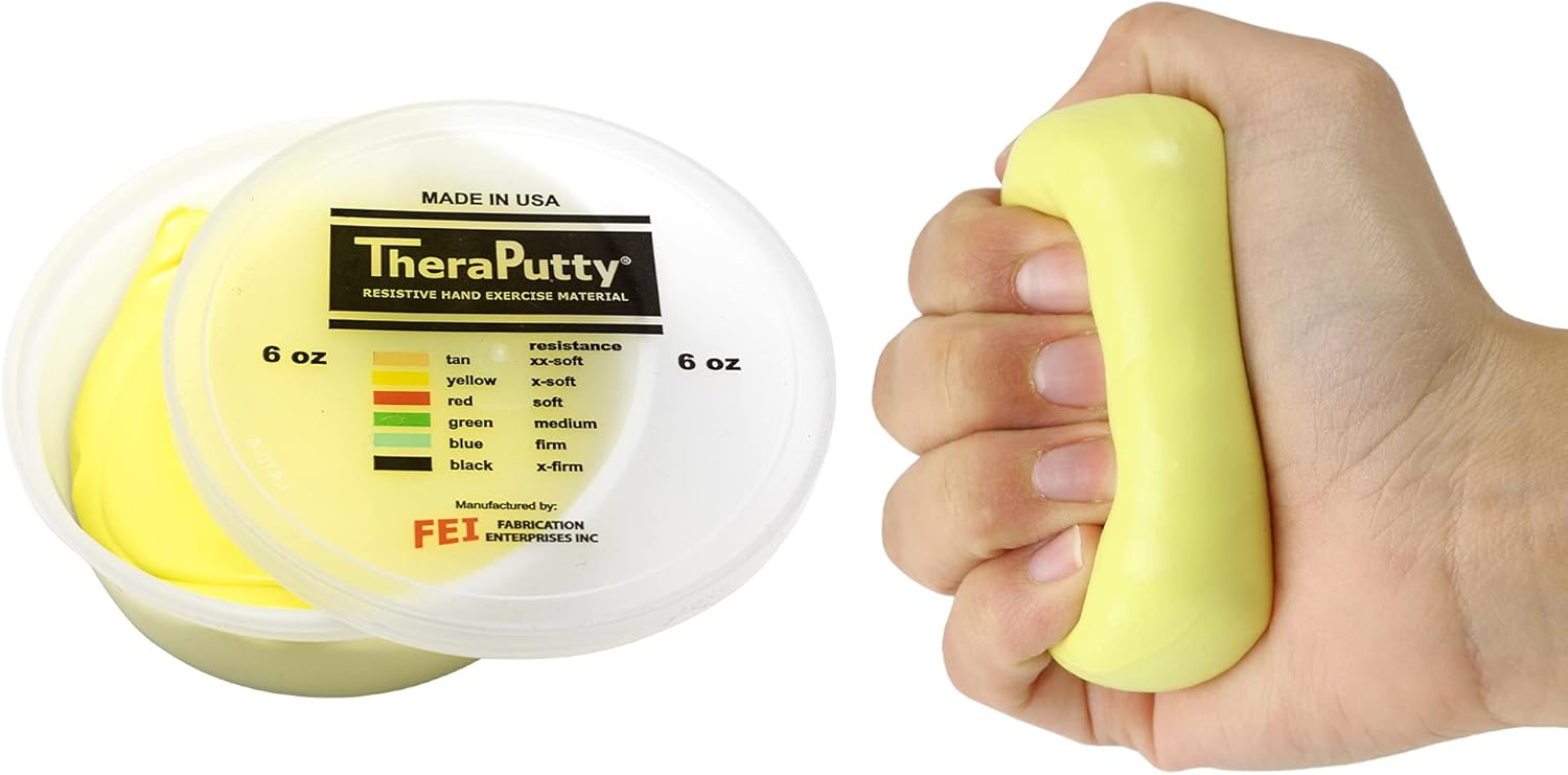 CanDo TheraPutty Standard Hand Exercise Putty For Rehabilitation, Exercises, Hand Therapy, Occupational Therapy, Hand Strengthening, Improve Motor Skills, Stress Relief, Yellow: X-Soft, 6 oz