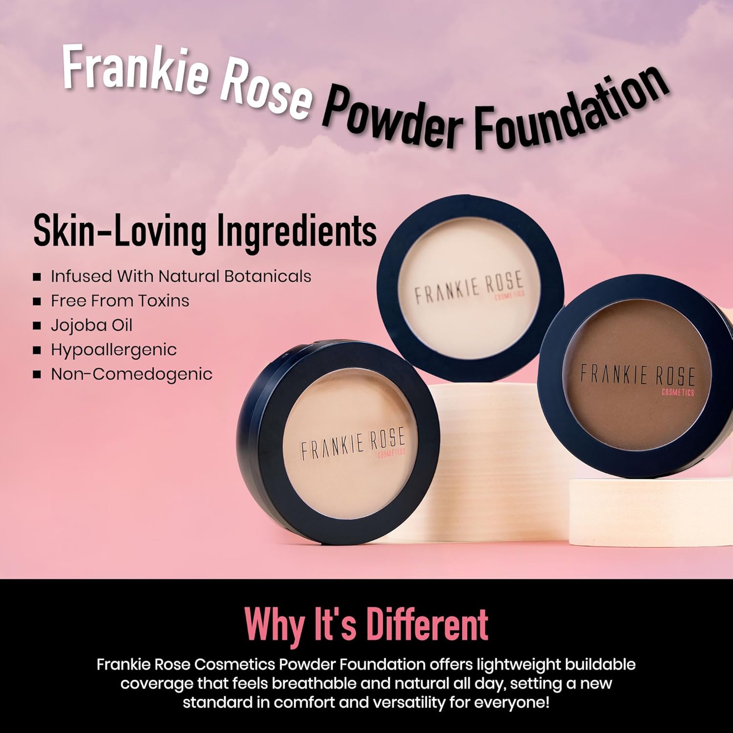 Frankie Rose Cosmetics Powder Foundation – Full Coverage Face Powder For Pores & Imperfections, Evens Out Skin Tone & Shine-Control | 58 Grams (Vintage)