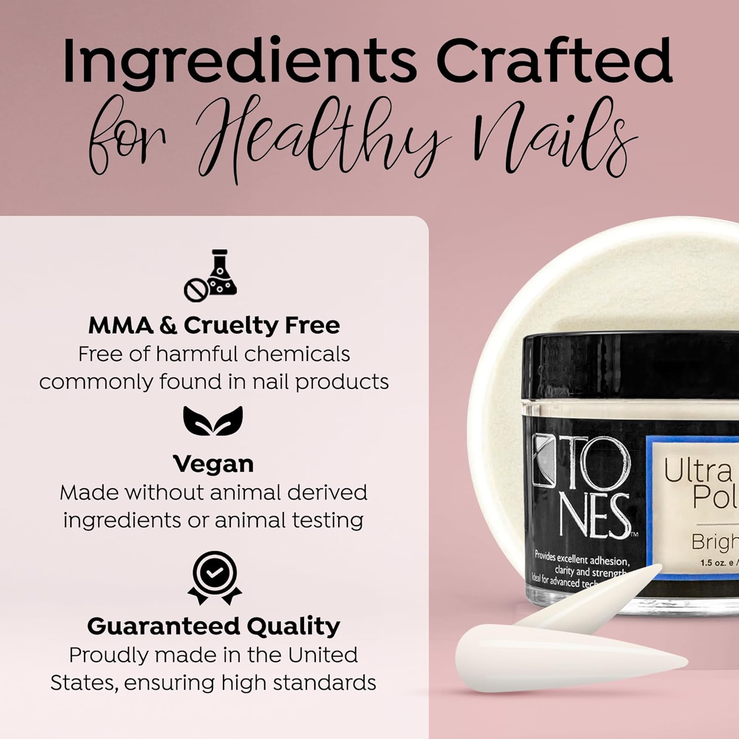 Tones Pro Acrylic Nail Powder, Sparkling Bright White (Opaque Off-White), (1.5 Fl Oz) - Long-Lasting & Non-Yellowing Polymer for Salon Quality Nail Extensions & 3D Art