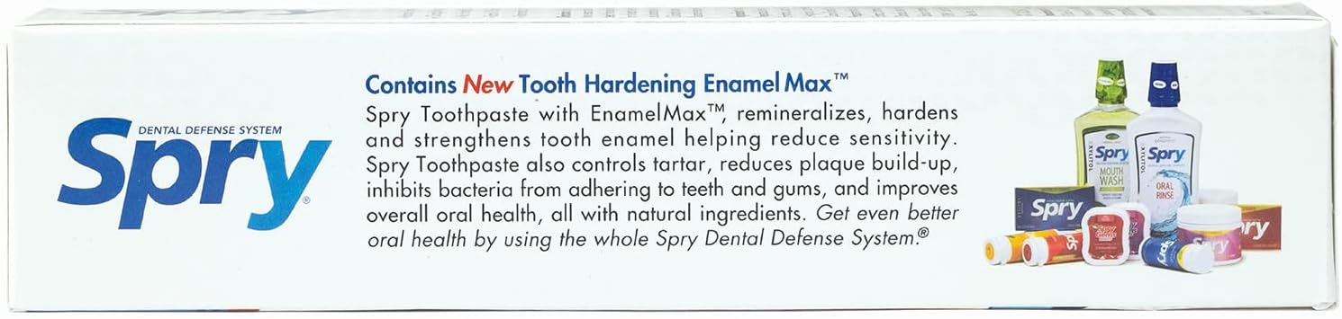 - HELPS MOISTURIZE DRY MOUTH: The xylitol found in Spry’s natural toothpaste can help moisturize dry mouth (xerostomia) by stimulating your mouth’s salivary glands. Brushing with xylitol toothpaste after meals can stimulate salivation, thus also raising your mouth’s pH level and washing plaque away through saliva.You will never want to go back to ordinary toothpaste once you have tried Spry's tasty and refreshing xylitol teeth whitening toothpaste.