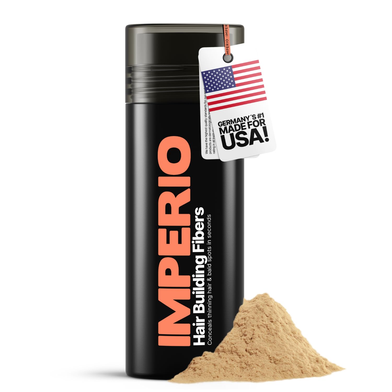- DERMATOLOGICALLY TESTED IN GERMANY - IMPERIO hair fiber is particularly gentle and kind to skin and hair. The hair building fibers have been tested by an independent laboratory in Germany without causing any adverse reactions. The hair thickener is dermatologically rated "very good" and maintain a high-quality standard.