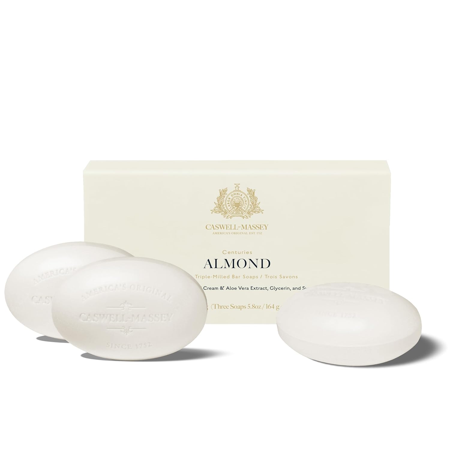Caswell-Massey Natural Bar Soap Gift Set - Almond Scent - Triple-Milled Moisturizing Body Soap Bars for Men & Women, Plant-Based Formula for Soft Skin, Made in USA, 3 x 5.8 oz