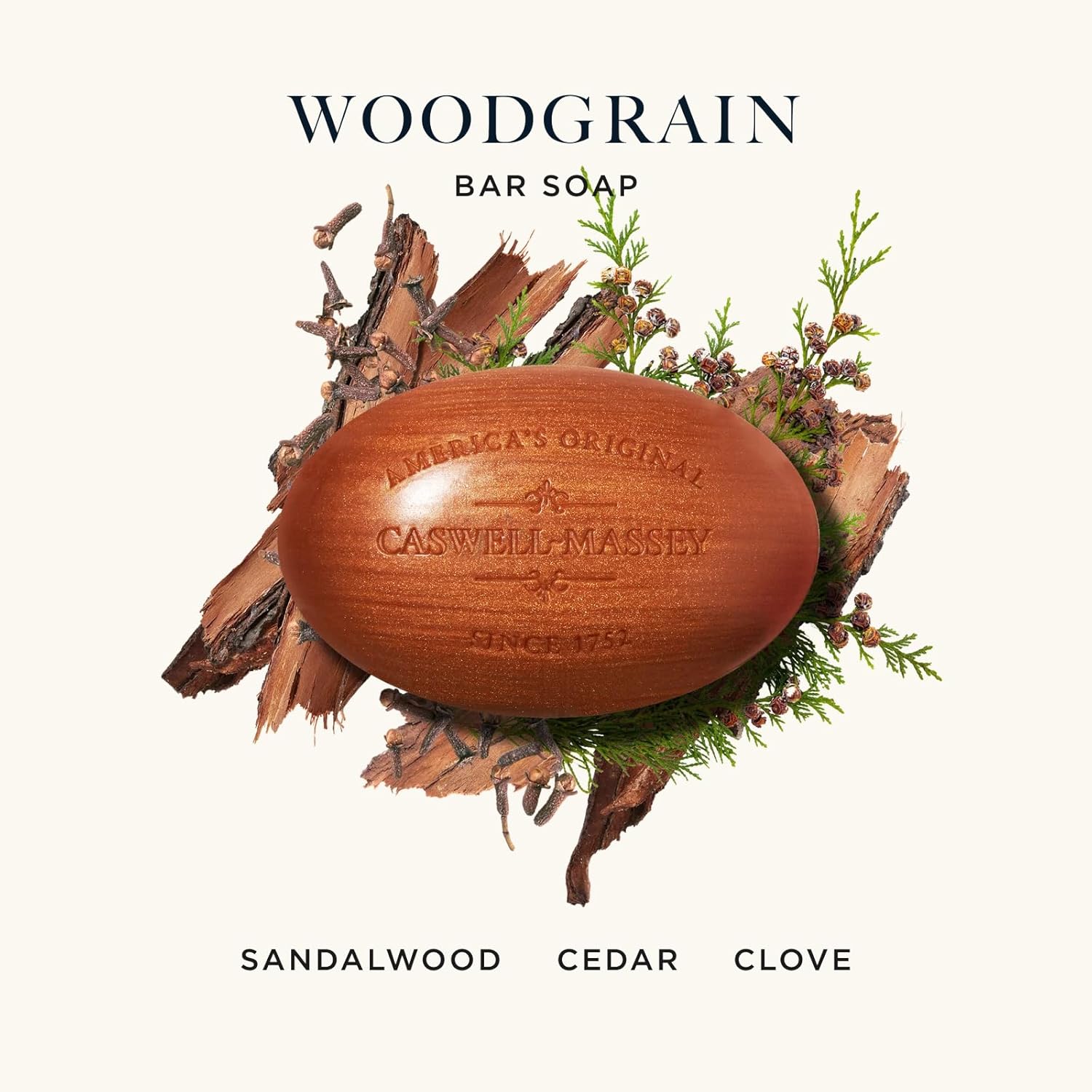 Caswell-Massey Woodgrain Sandalwood Natural Bar Soap for Men & Women, Moisturizing Body Soap Bar for All Skin Types, Made with Essential Oils & Plant-Based Formula for Soft Skin, Made in USA, 5.8 oz