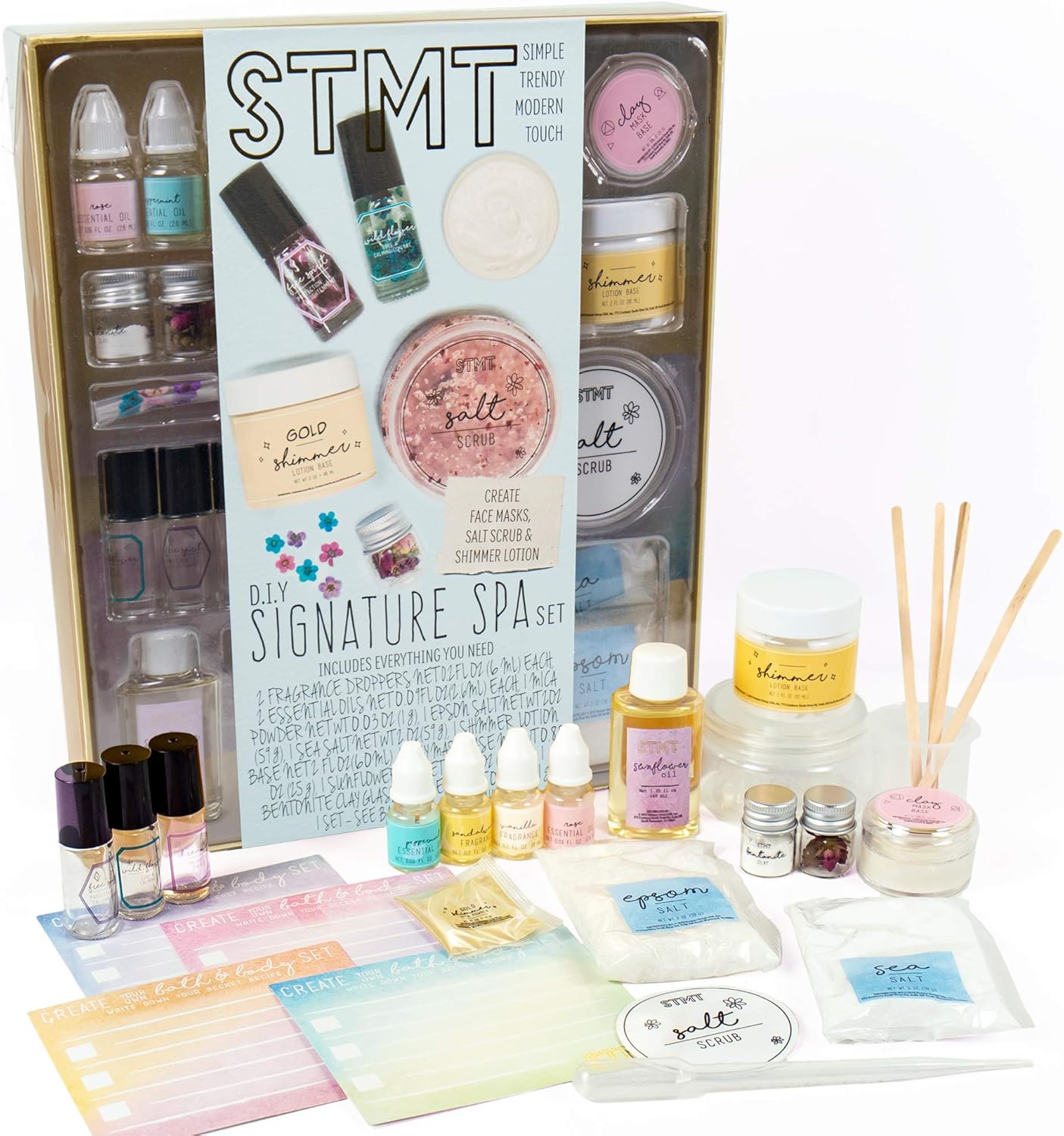 STMT DIY Signature Spa Set by Horizon Group USA, Mix & Make Your Own Spa Supplies with Salt Scrubs, Fragrances & Shimmer Lotions. Multicolored