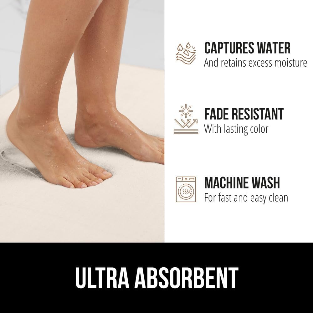 GORILLA GRIP Thick Memory Foam Toilet Rug for Bathroom, U Shaped Washable, Soft Absorbent Velvet Topside Floor Mats, Machine Wash, Cushioned Luxury Rugs for Bath Room, 22.5 x 19.5, Cream