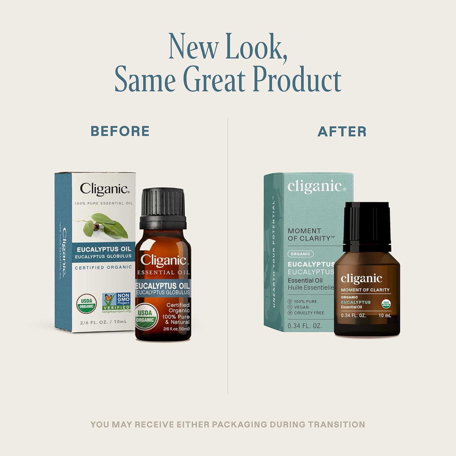 Cliganic USDA Organic Eucalyptus Essential Oil, 100% Pure | Natural Aromatherapy Oil for Diffuser Steam Distilled | Non-GMO Verified (Packaging May Vary)