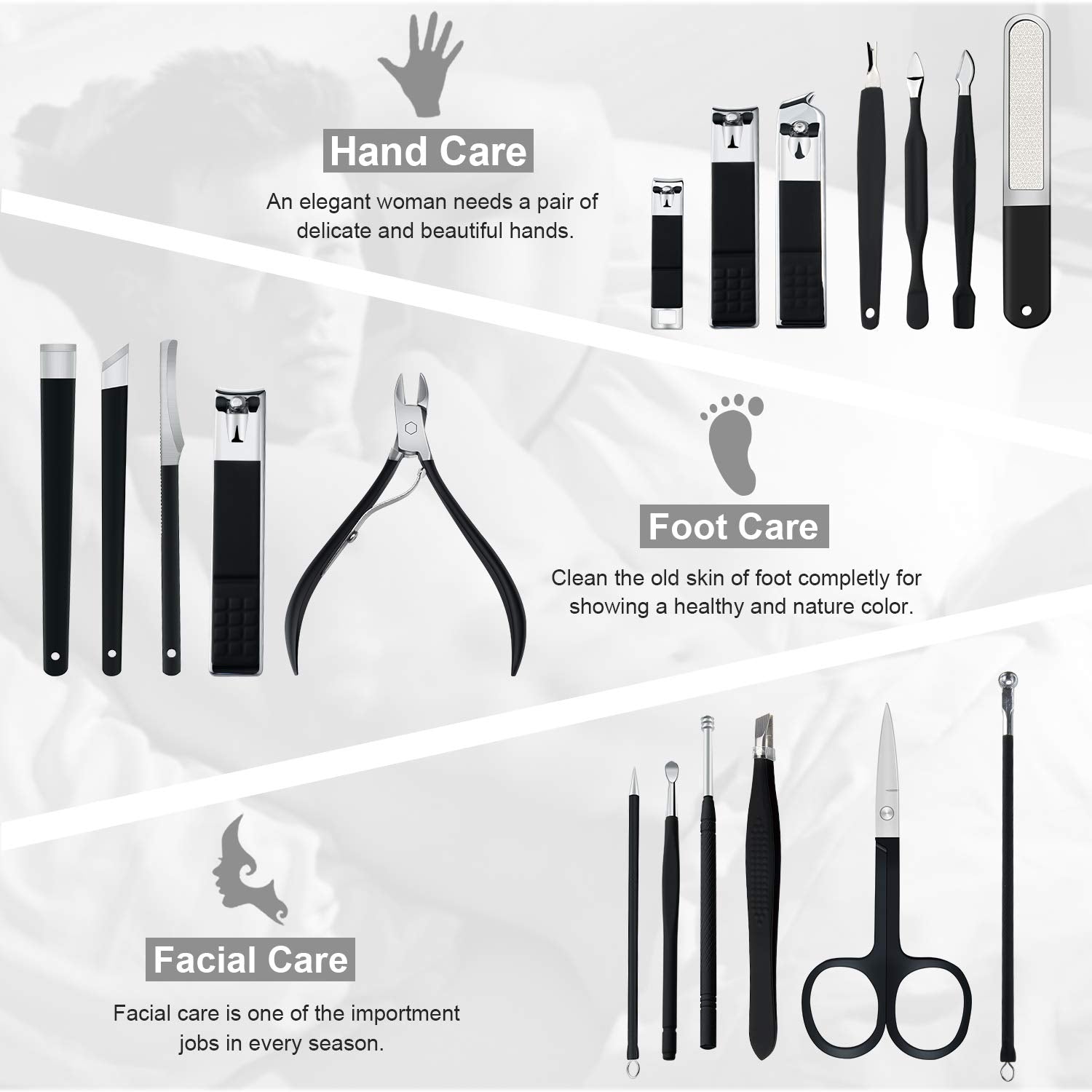 - β€ MULTI-FUNCTION: The function of most nail clippers set is centered on trimming nails while our kit has a variety of functions including hand care, foot care and facial treatment .The new tools include mini nail clipper for kids, Acne bowl needle and spiral ear spoon that can meet your all kinds of care needs in daily life.