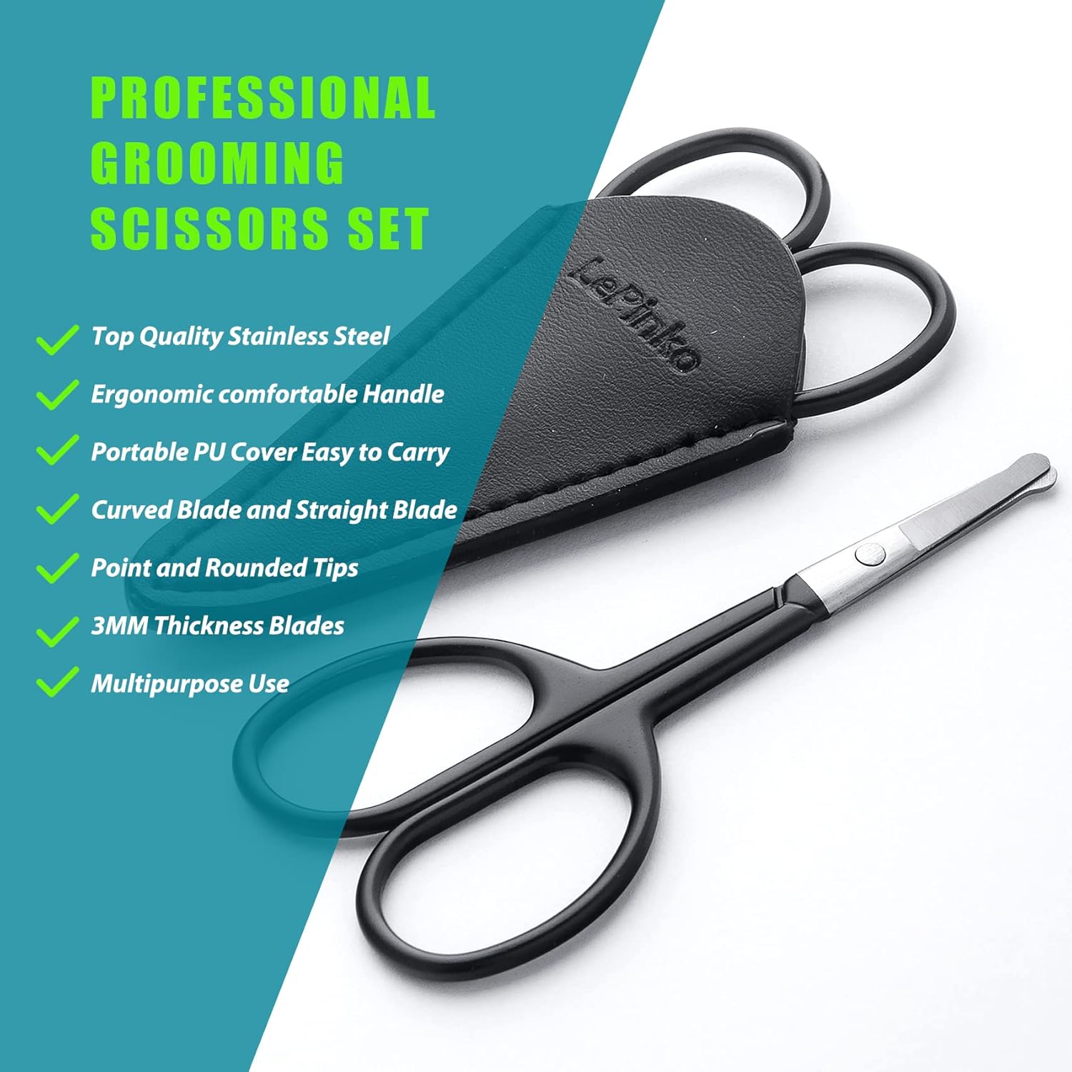 - Professional Design - Best choice for body beard nose facial ear eyebrows eyelashes moustache mustache hair cuticle bikini baby nail trimmer.Hair scissors set are essential for men or women.