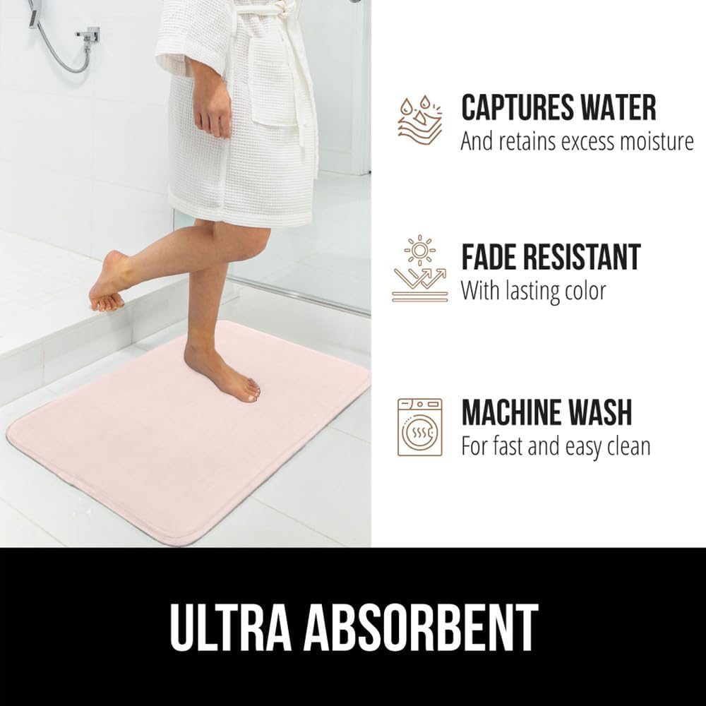 GORILLA GRIP Memory Foam Bath Mat, Soft Absorbent Velvet Bathroom Mats, Durable Dots on Underside, Machine Washable Bathmat, Carpet Rug Room Decor for Shower Tub Floor RV, 30x20 Rugs, Pink