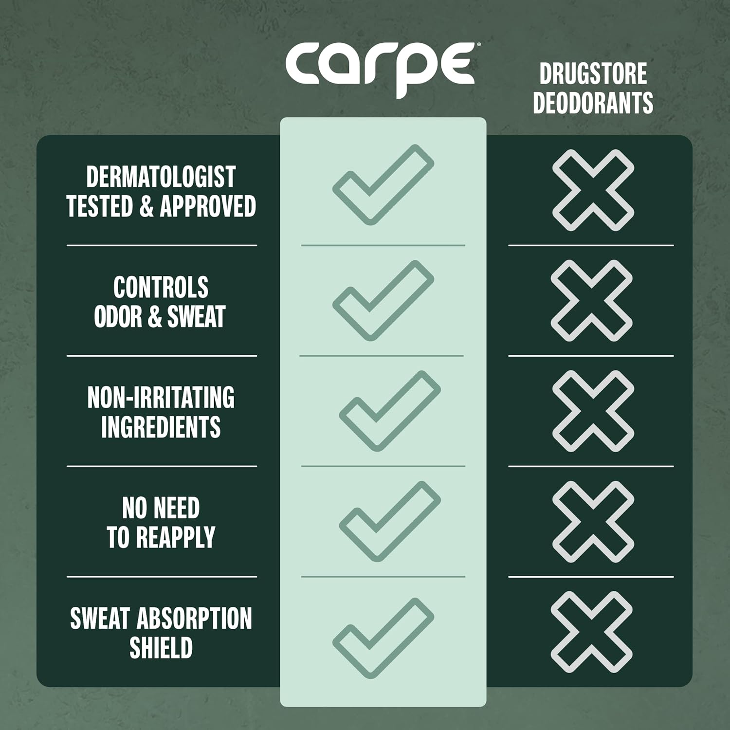 - DEVELOPED WITH DERMATOLOGISTS: Carpe’s scientifically developed sweat control formula has been independently tested for safety and proven to be a leading over-the-counter sweat solution. Our deodorant for extreme sweating is gentle on skin & provides the protection you can count on!