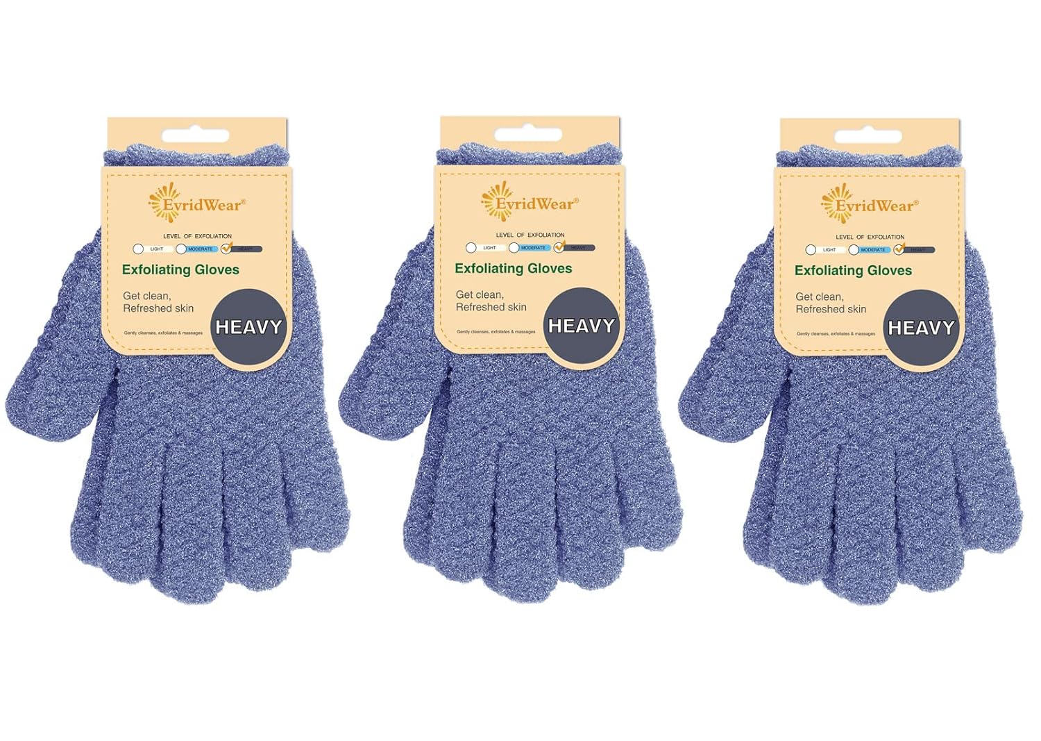 Evridwear Exfoliating Glove for Shower Man and Women, Dual Texture Bath Body Scrub Gloves Dead Skin Cell Remover for Massage (3 Pairs Heavy)
