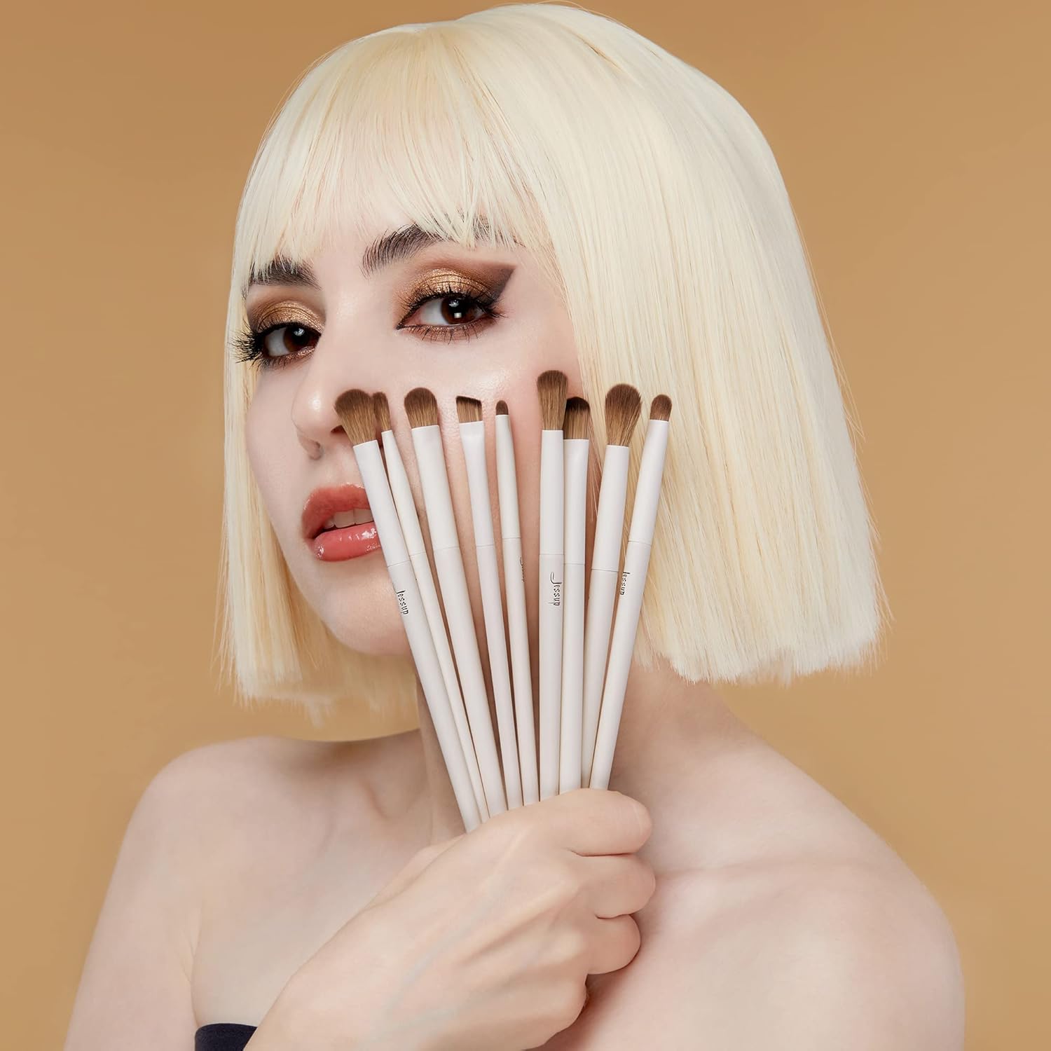 - Get your desired eye look in minutes with this all-inclusive set:All eye brushes have been constructed by hand and widely analyzed. We hand-picked 10pcs the most indispensable detailed eye makeup brushes: 4pcs blending brushes, 3pcs eyeshadow brushes,a precise eyeliner brush,a duo concealer brush and a highlight brush to function for a different makeup purpose to ensure you’ve got all brushes necessary to make perfect eye makeup.
