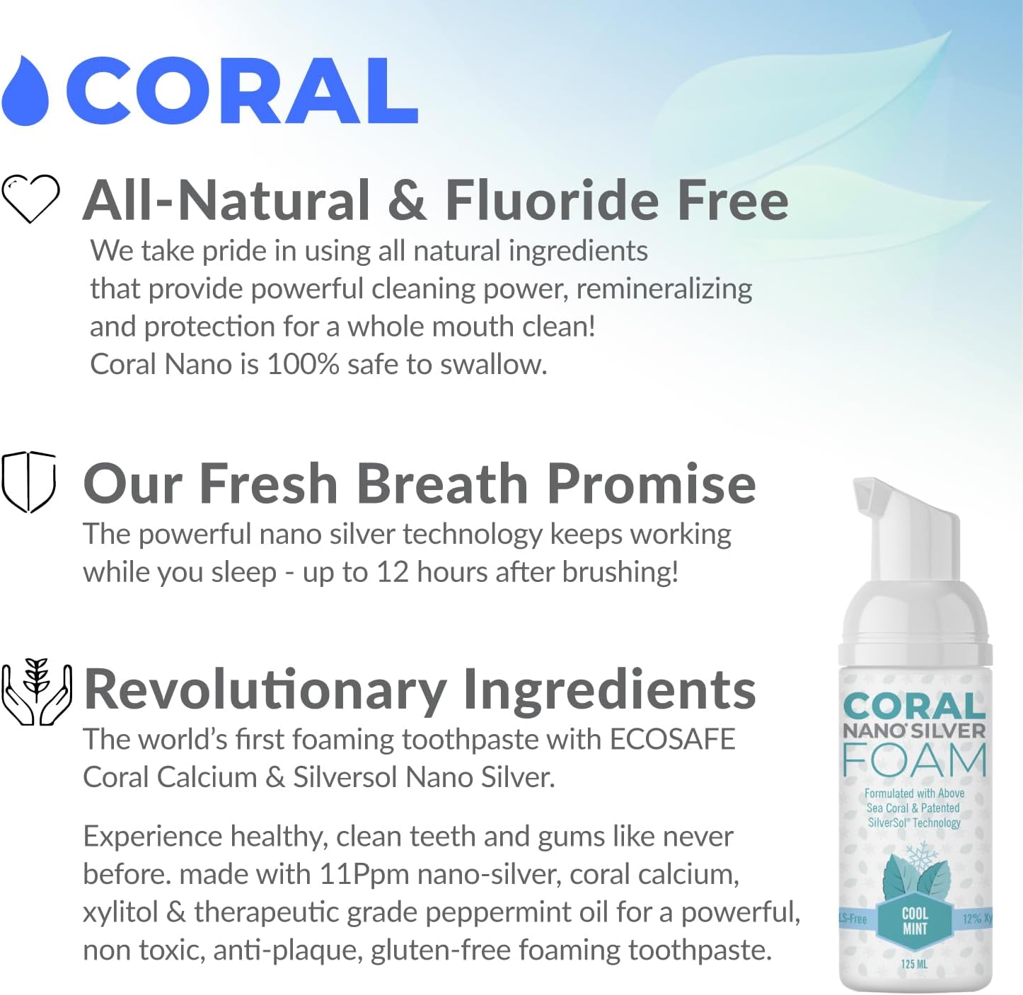 - Are you in pursuit of the perfect toothpaste? Look no further than Coral's innovative natural Fluoride free foaming toothpaste β the ultimate choice for a refreshing, natural, and deeply effective oral care routine. Formulated with the power of coral calcium, nano silver particles and Xylitol for exceptional oral care benefits.