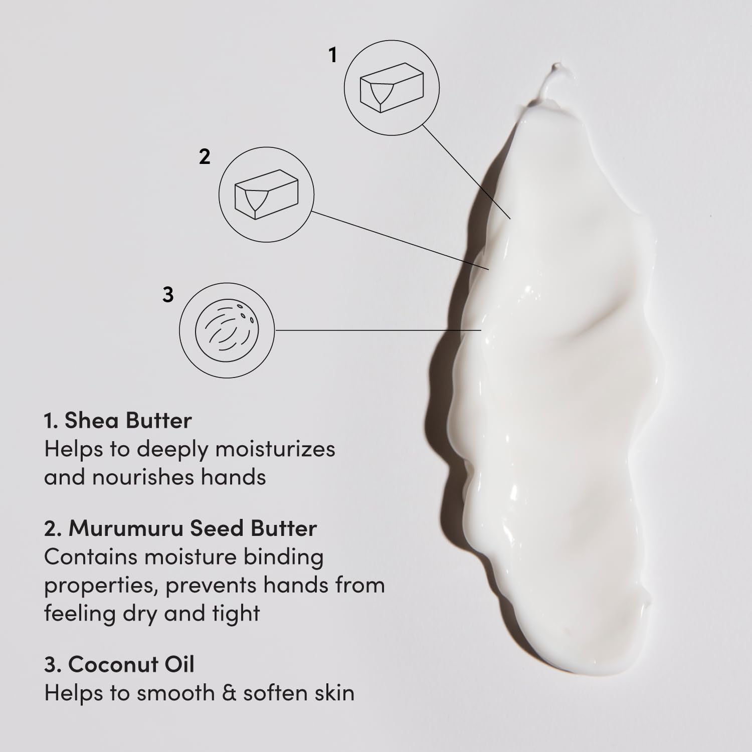 - Ingredients that Deserve a Round of Applause - Formulated with shea butter to deeply moisturize and nourish hands and Murumuru seed butter, which contains moisture-binding properties, to prevent hands from feeling dry and tight. We also add Coconut oil to smooth & soften skin.