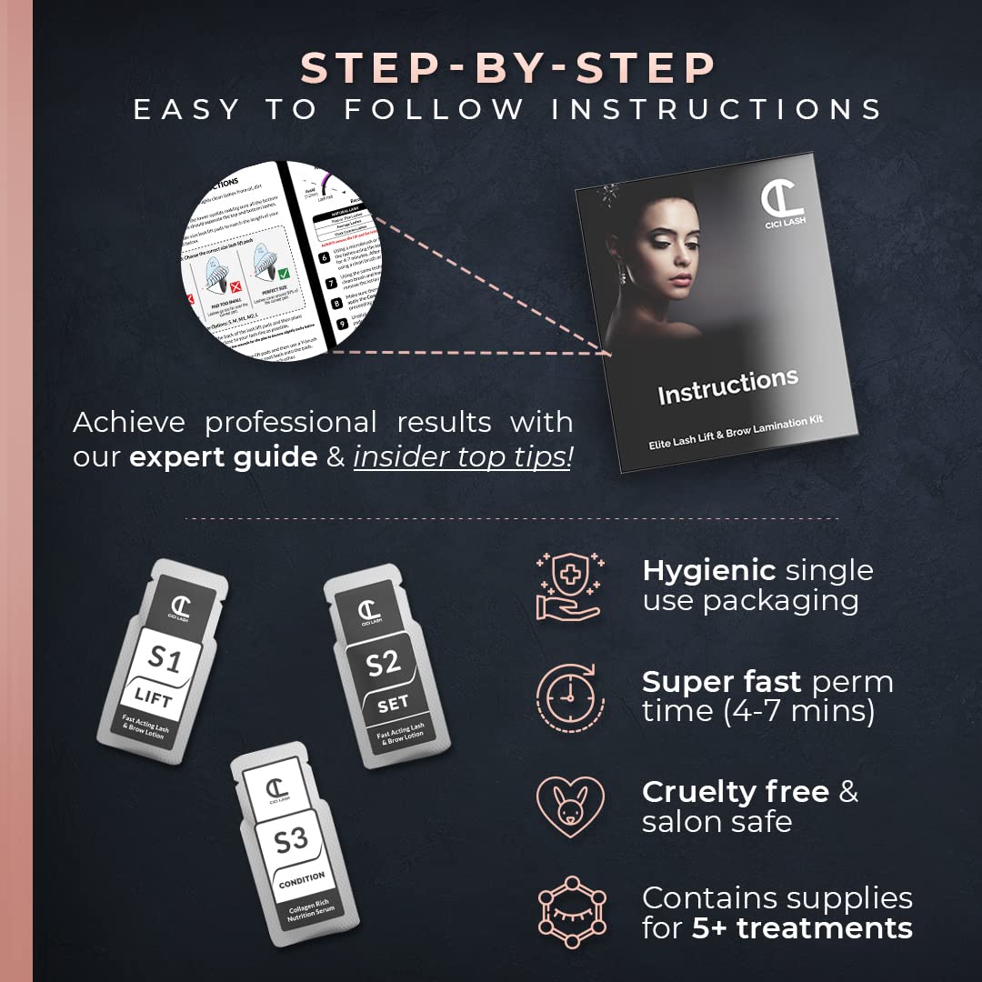 - ๐ ALL IN 1 SALON STYLE LASH & BROW KIT - Contains everything you need to create fuller, thicker, beautiful brows and long lasting Insta-ready lashes. We give you the tools you need to complete at least 5 full treatments from the get-go including premium lift lotions, silicone shields / rods, under eye pads, lash picks and other essential accessories. We also include our exclusive simple-to-follow expert guide & insider top tips on how to achieve the best results!