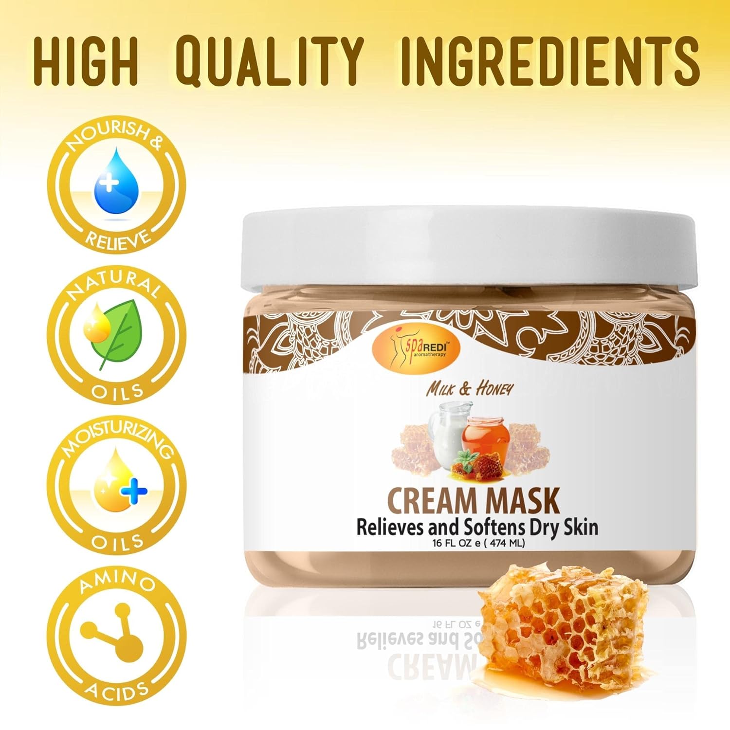 SPA REDI - Body and Foot Cream Mask, Milk and Honey, 16 Oz - Pedicure Massage for Tired Feet and Body, Hydrating, Fresh Skin - Infused with Hyaluronic Acid, Amino Acids, Panthenol, Comfrey Extract