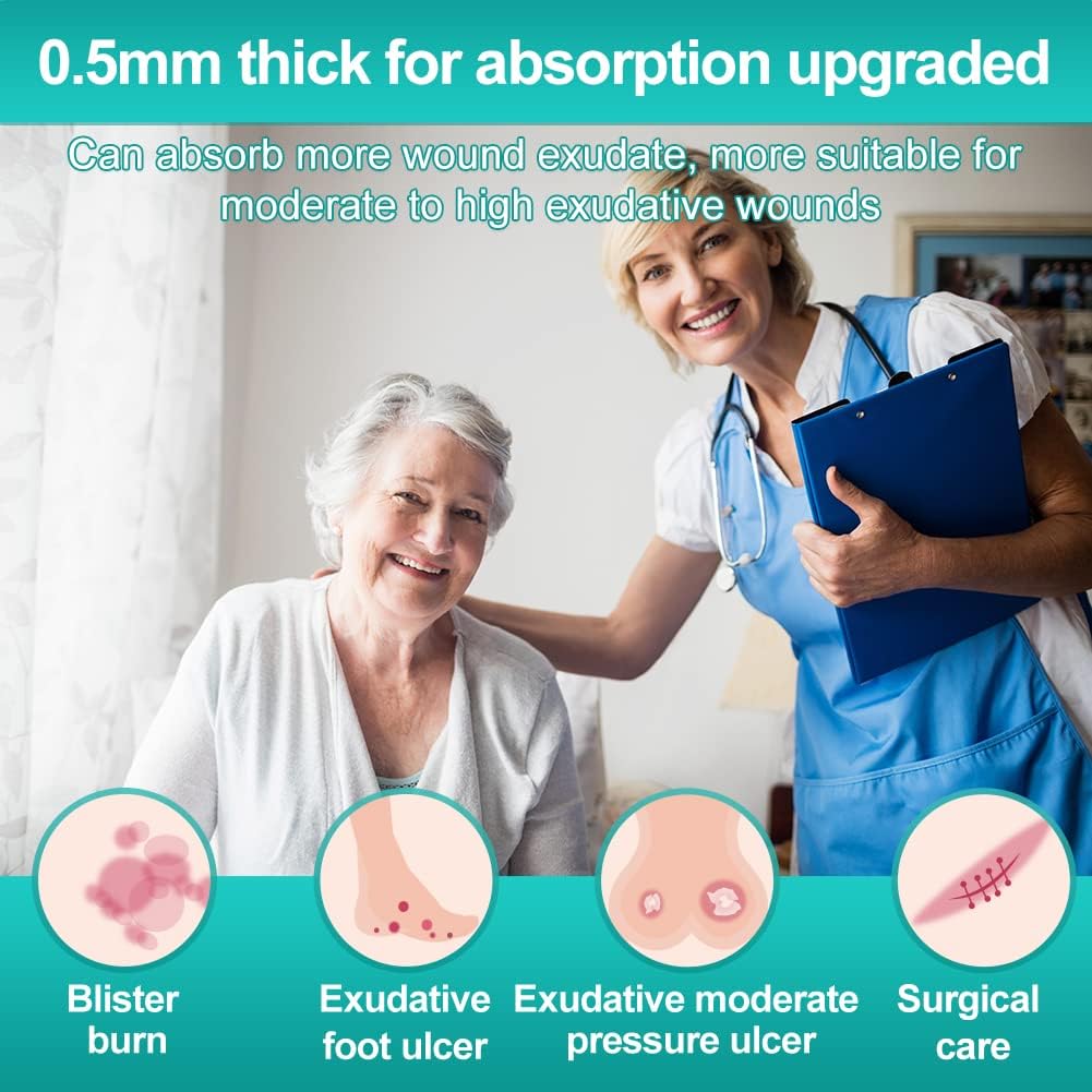 - Highly range of versatile - Applicable on large piece stage I, stage II burn, bedsore, cystic acne, ulcers with moderate exudate and the daily care for small post-op wounds, blisters, cuts, dermatitis