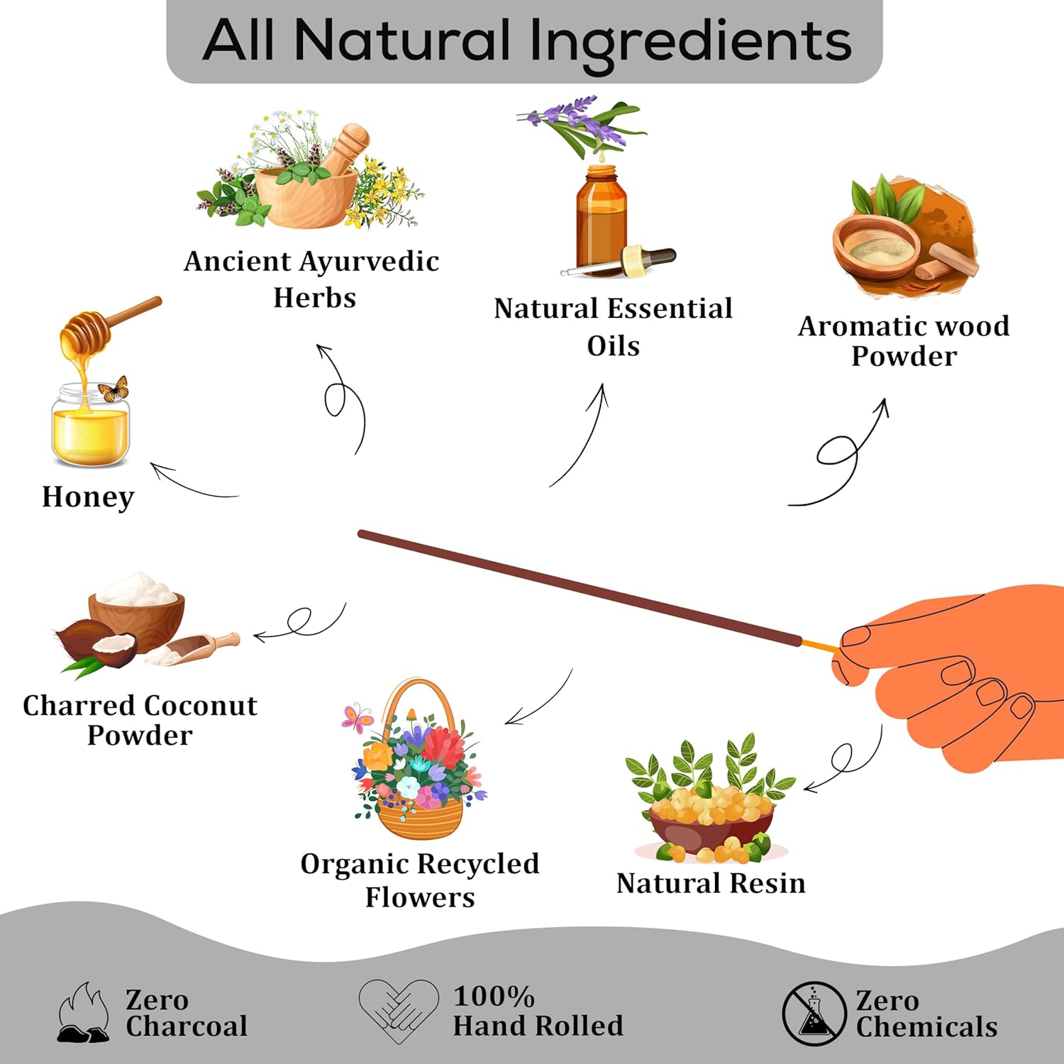 - Guarantee 100% natural incense sticks chemical free organic, pure herbal ingredients without any chemical fragrance. You can free return for any reason.