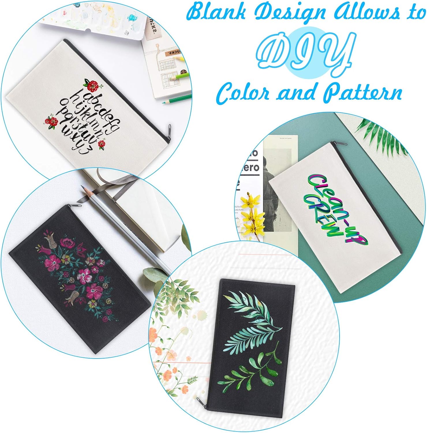 12 Pieces Black Cotton Canvas Makeup Bag, Multipurpose Cosmetic Bag with Zipper Travel Toiletry Pouch, Blank DIY Craft Bag (Black, S)