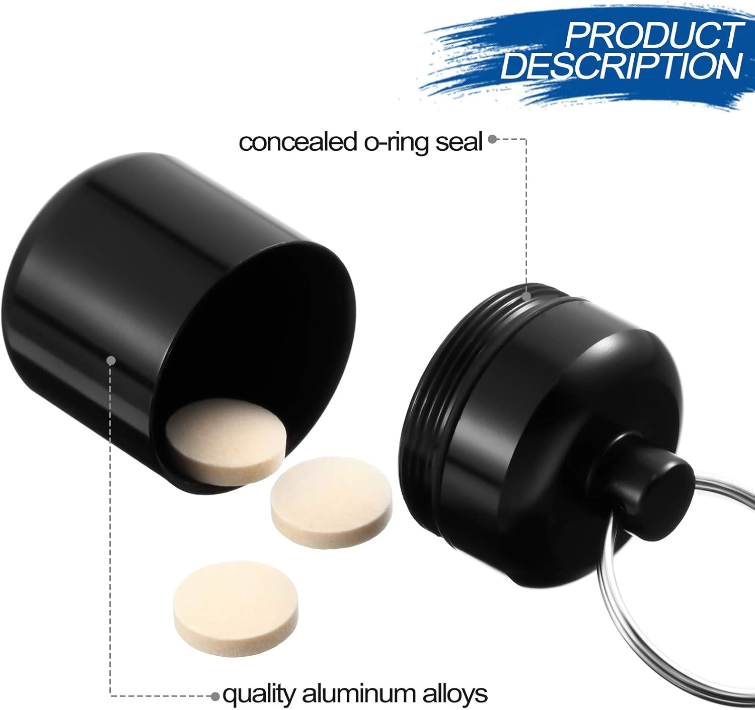 - "Easy to carry: our aluminum pill case is equipped with a key ring, so you can easily clip them to handbags, key chains, belt loops, bags, or use them as zipper pulls for coats or jackets, clothes"