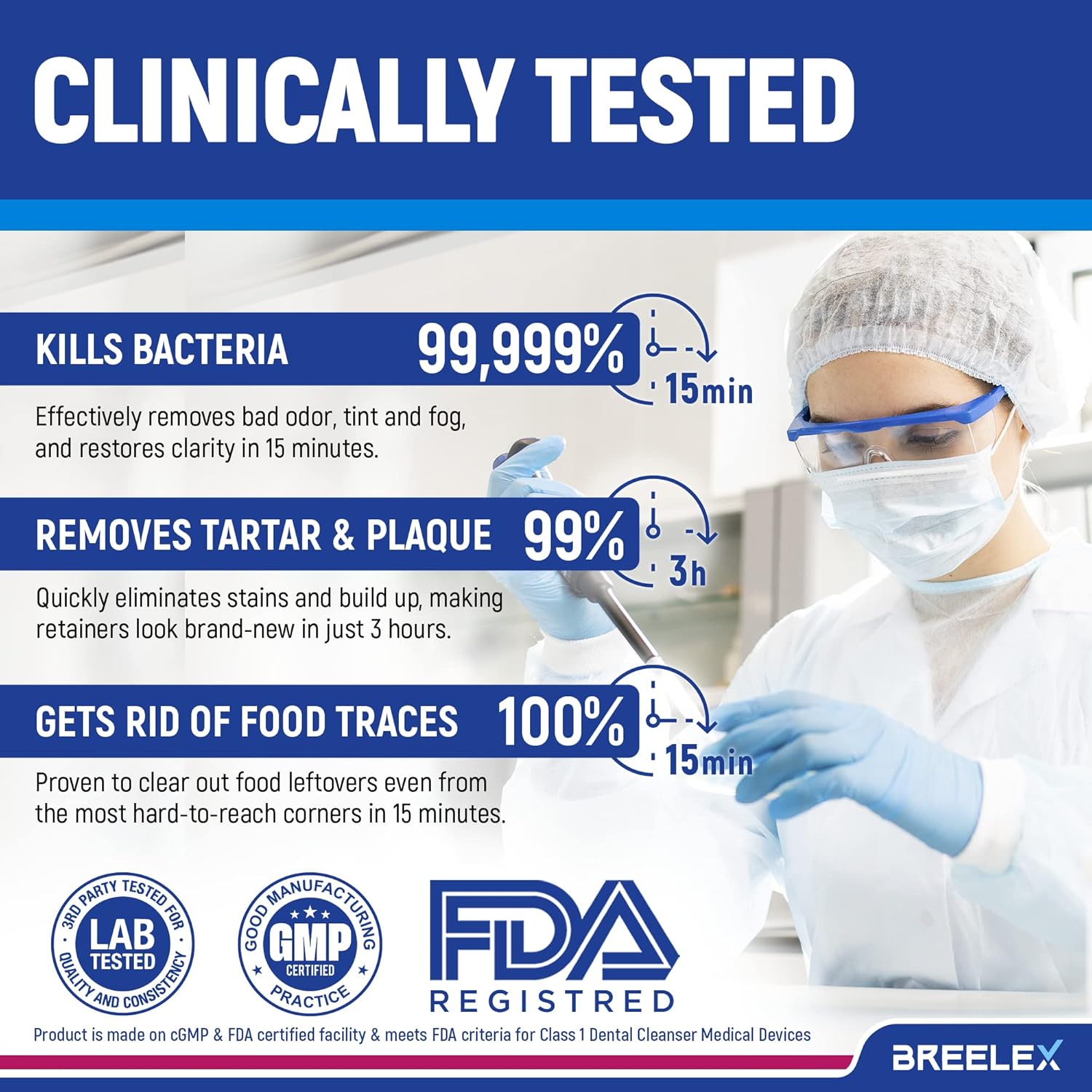- Comprehensive Dental Cleaning: Breelex denture cleaner tablets efficiently dissolve stubborn stains from aligners, mouth guards, and other dental devices. These dental cleaning tablets ensure freshness by effectively eliminating odor and reducing plaque