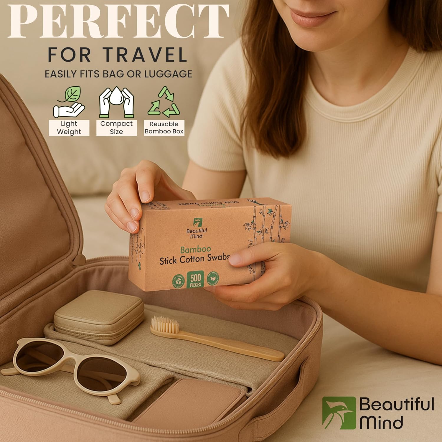 - 🍃 ECO-FRIENDLY BAMBOO SWABS - A BETTER CHOICE FOR YOU and the PLANET! Did you know that over 5.25 trillion pieces of plastic waste are floating in the world’s oceans? Traditional plastic cotton swabs contribute to this pollution, clogging drains, and eventually ending up in landfills and waterways. By choosing Beautiful Mind Bamboo Swabs, you’re making an eco-conscious decision to reduce plastic waste. Our natural, biodegradable bamboo swabs offer a sustainable alternative that’s both kind to your skin and the planet. Clean, green, and guilt-free—switch to Beautiful Mind Bamboo Swabs today!