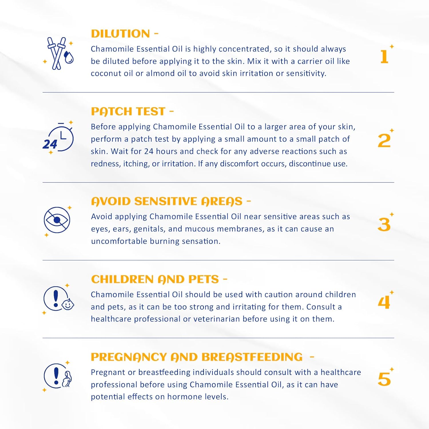 - Multi Purpose: Chamomile essential oil can be used not only as a natural fragrance to create a cozy home environment, but also as an ingredient in skincare products to enhance skin radiance and in massages to help relax the mind and body