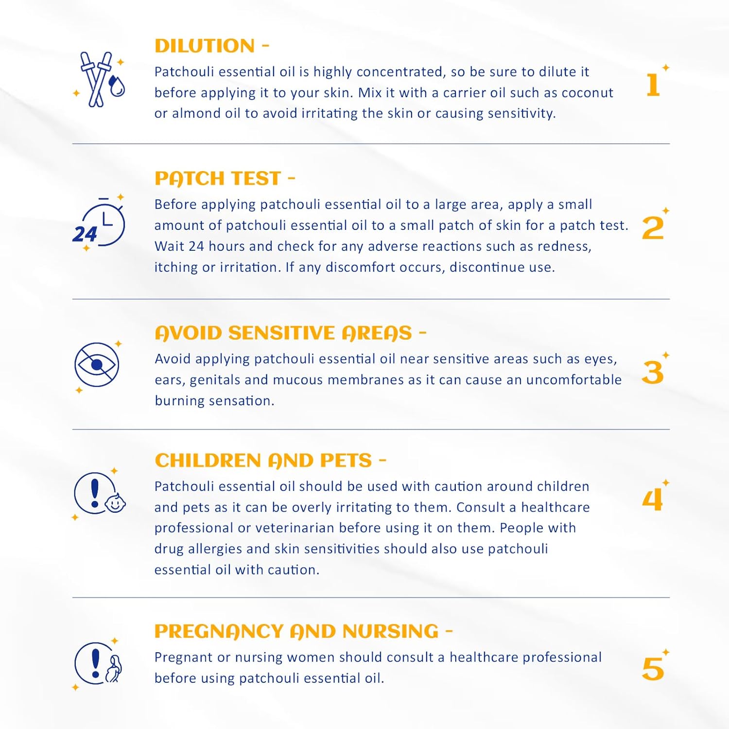 - Safer: Patchouli oil is distilled from young leaves. No additives, unfiltered, undiluted with no fillers. Tested for purity and composition by GC/MS, MSDS, COA, IFRA and more