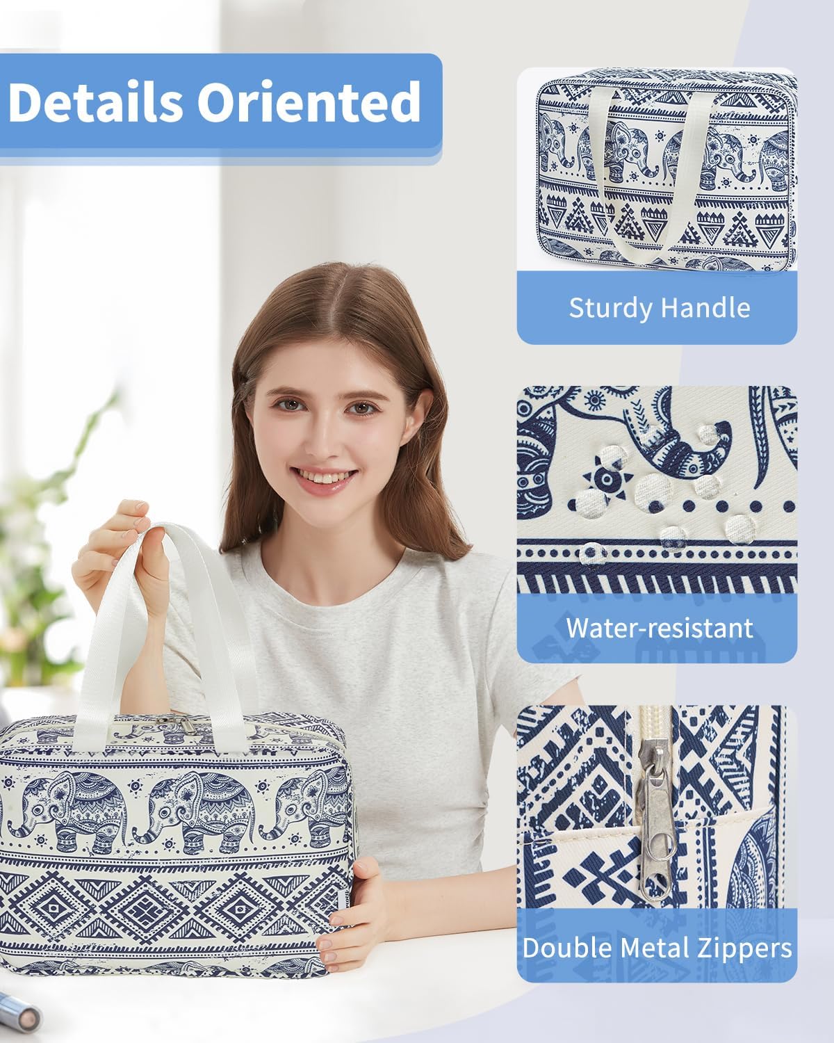 Full Size Toiletry Bag Women Large Cosmetic Bag Travel Makeup Bag Organizer Medicine Bag for Toiletries Essentials Accessories (Large, Elephant)