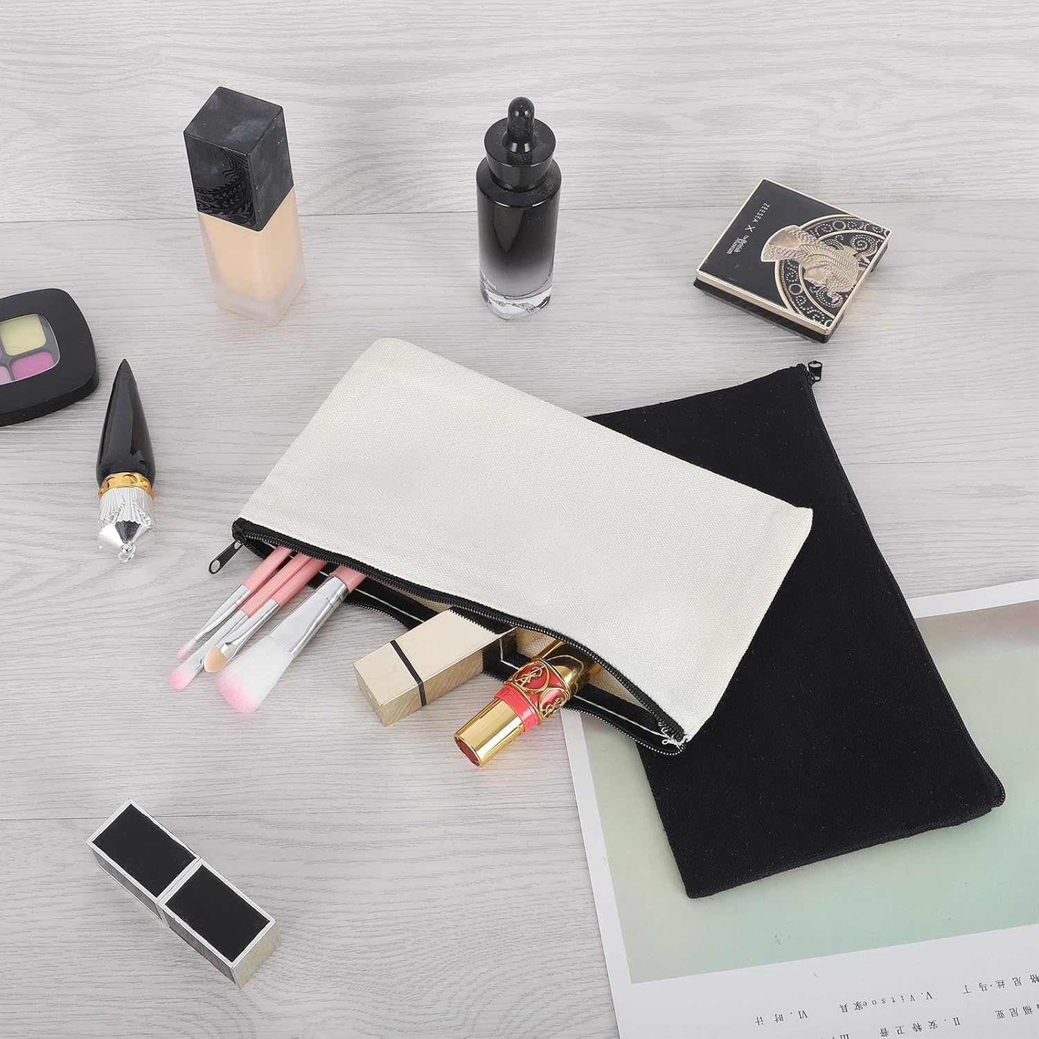 12 Pieces White Cotton Canvas Makeup Bag, Multipurpose Cosmetic Bag with Zipper Travel Toiletry Pouch, Blank DIY Craft Bag (White, M)