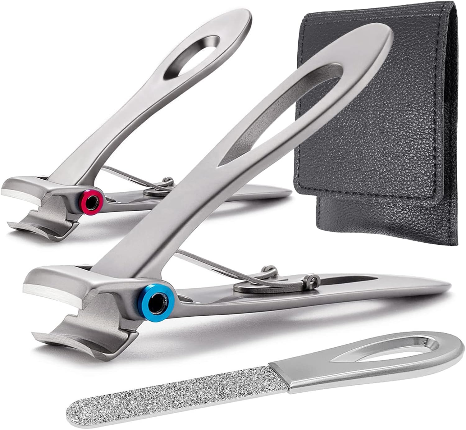 Large and Small Nail Clippers Set, Toenail Clippers for Thick Toenails, Wide Jaw Opening Heavy Duty Stainless Steel Toe Nail Clippers for Seniors, Men & Women