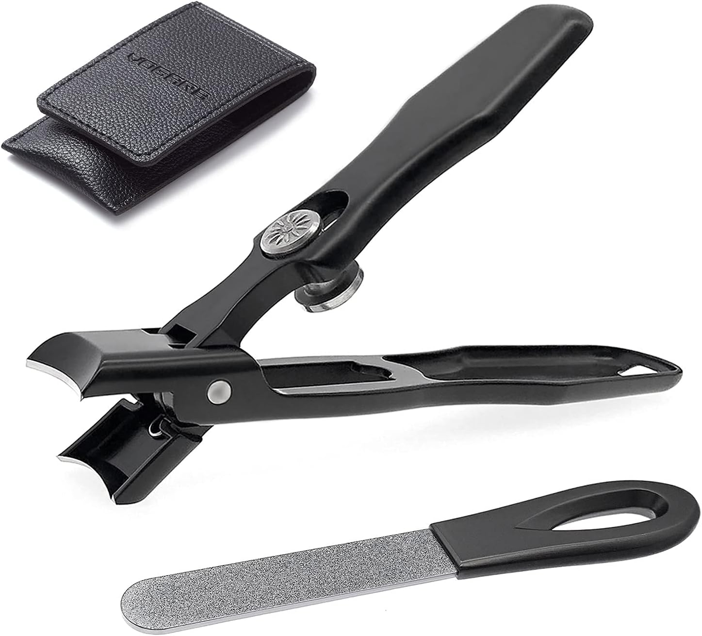 Toenail Clippers for Men Thick Nails Large Wide Jaw Opening Portable Ultra Sharp Nail Clippers with Catcher Heavy Duty Fingernail Cutter for Adult Seniors Women (Black with File)