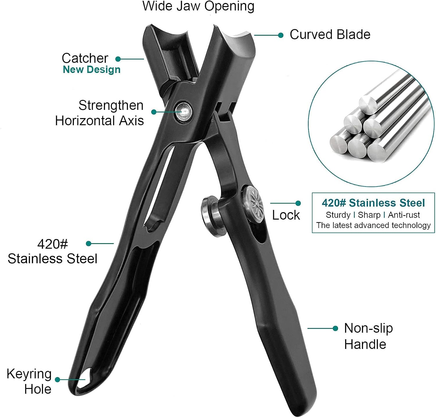 - Ultra Wide Jaw Opening and Wide Blades -- Wide jaw opening blades can open to 12mm(0.47inch), and curved wide blades up to 16mm(0.63inch);perfect nail nipper to cut your thick or ingrown fingernails and toenails due to tough,fungus,paronychia,aging and other health concerns, be used as a manicure or pedicure tool;