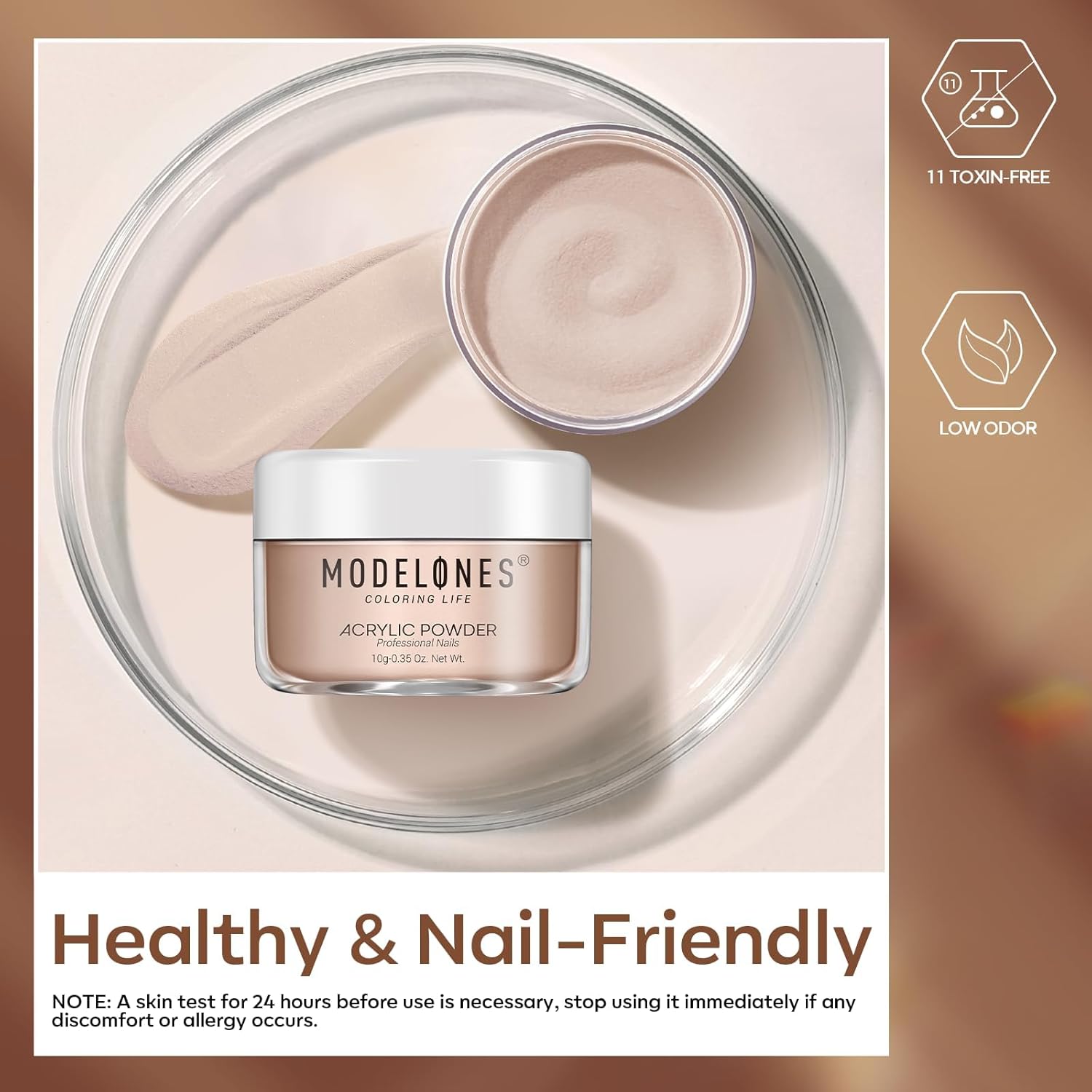 - SAFE & HEALTHY: Modelones acrylic powder features healthy and 11 toxin-free ingredients. No harsh ingredients or adhesives that lead to damaged nails, paraben & cruelty-free, anti-chipping, low odor and skin-friendly.