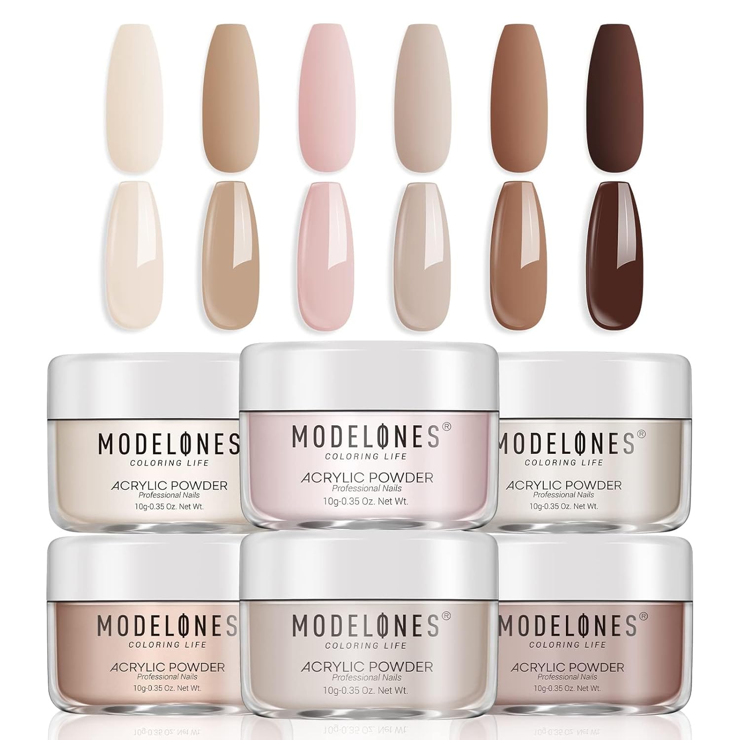 - LIMITED EDITION NUDE ACRYLIC POWDER: 6Pcs* 10g All Seasons Modelones acrylic powder set. Neutral Nude series is suitable for spring,summer, fall, winter, Valentine's Day, Mother’s Day, any holiday, special event and daily routine life, achieving the best modern salon-looking acrylic mani at home with a small fee.
