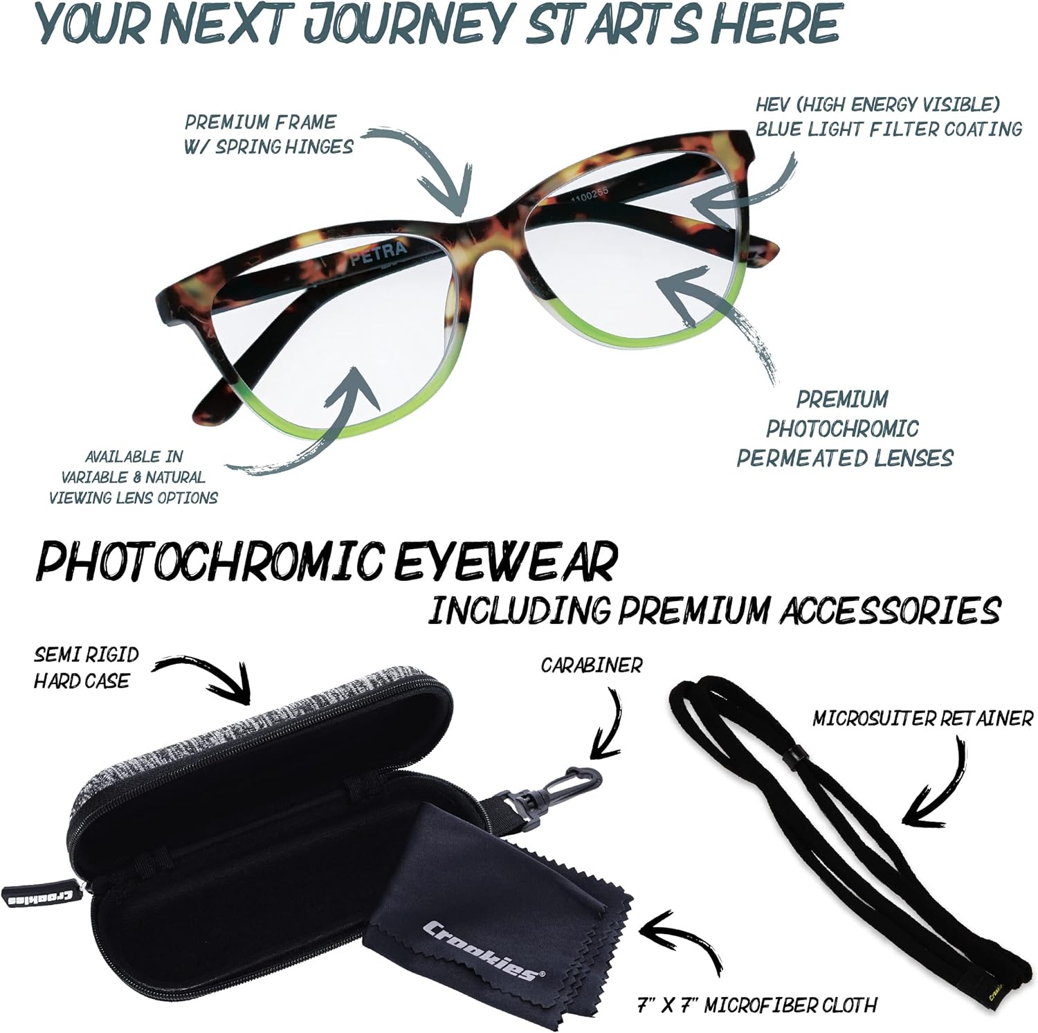 Croakies Petra Photochromic Progressive Eyewear | UV400 Sunglass for Outdoor | Bluelight Eyeglass for HEV Devices | Bundle