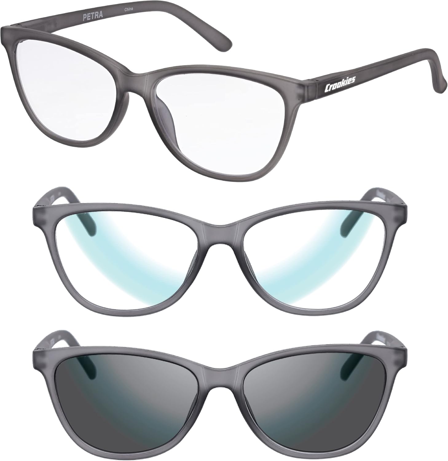 Croakies Petra Photochromic Progressive Eyewear | UV400 Sunglass for Outdoor | Bluelight Eyeglass for HEV Devices | Bundle