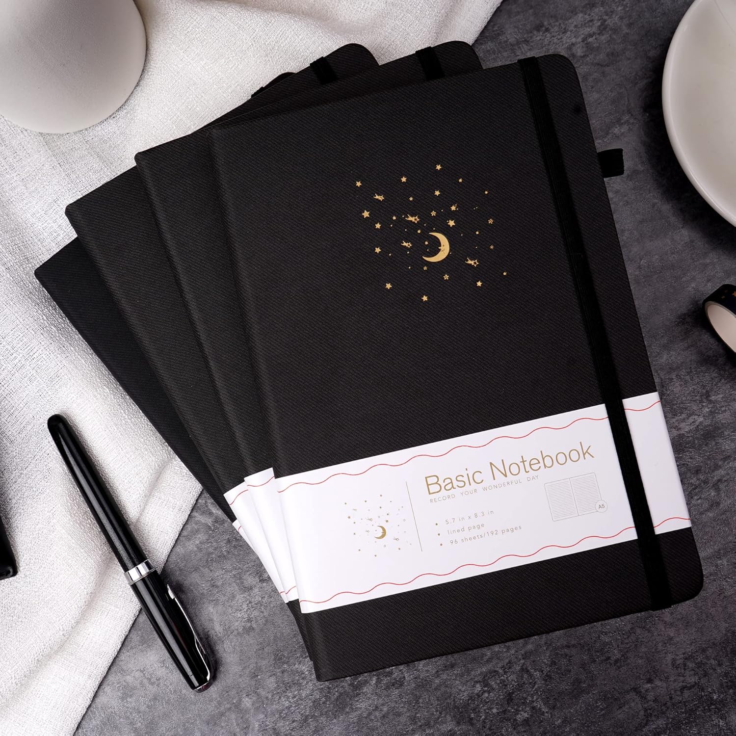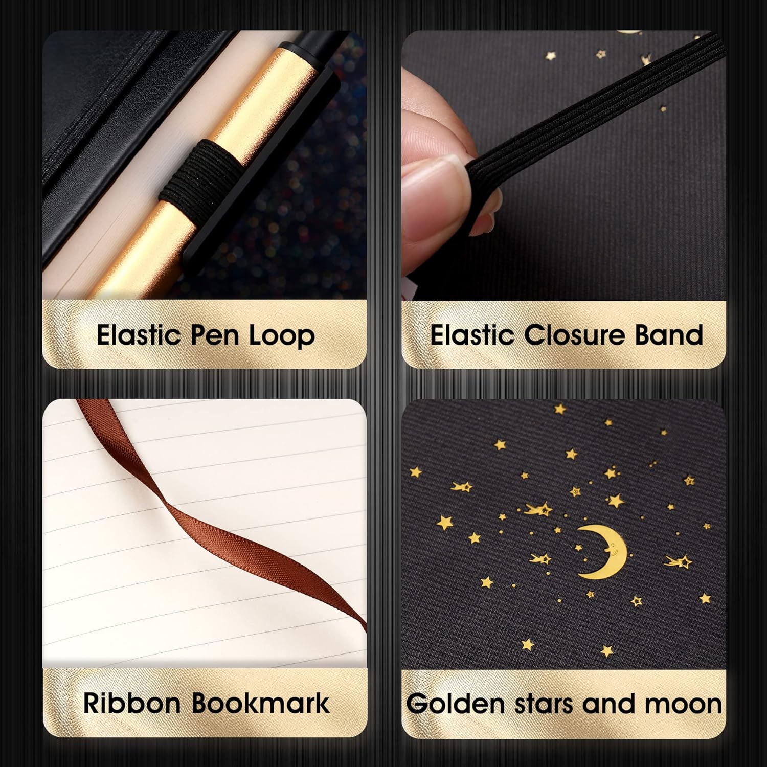 4 Pack Lined Journal Notebooks for Work, Hardcover Notebook Journal with Pen Loop, A5 Leather Notebook Journal Cover, Medium 5.7" x 8.3", (Black Ruled)