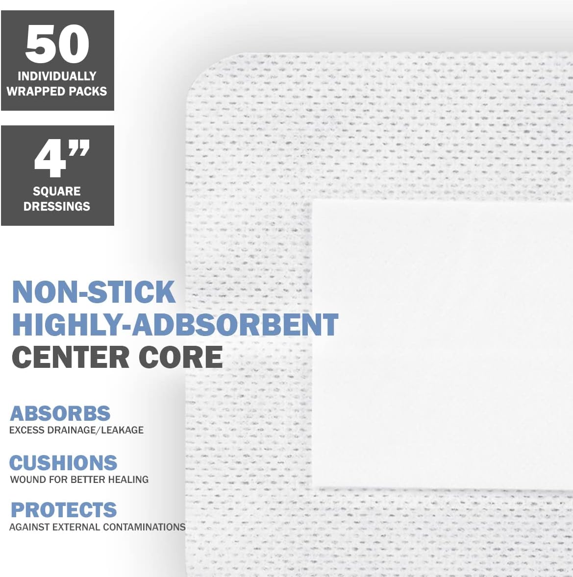 - ✅ULTRA-ABSORBENT CENTER CORE- The non-adherent, non-woven, highly-absorbent center pad absorbs excess wound exudate to provide a moist environment for improved wound healing.