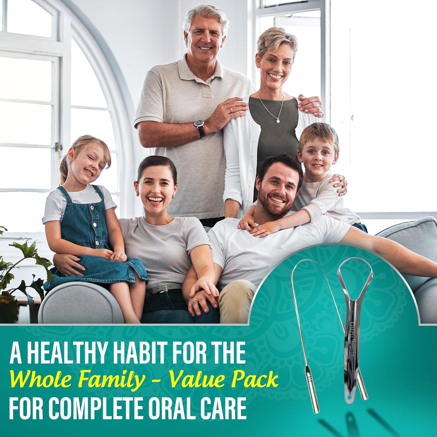- TRAVEL FRIENDLY & SAFE FOR ALL AGES: Small enough to fit in a pocket, handbag, purse, or luggage, our tongue cleaner is the ideal size for travel. The design is compatible for people of all ages, from children to adults. Made with Medical Grade Stainless steel, it is both safe and effective for all ages. Plus, this special pack includes four scrapers and 2 travel cases for optimal value.