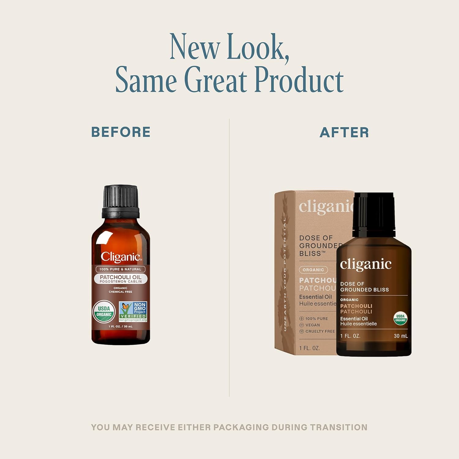 Cliganic Organic Patchouli Essential Oil - 100% Pure Natural for Aromatherapy Diffuser | Non-GMO Verified (Packaging May Vary)