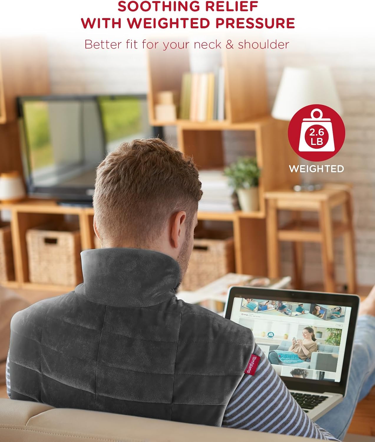 - 2.6lb Weighted Heating Pad: Filled evenly with micro-glass beads, our 19"x 23" large heating pad for neck and shoulders and back is designed for better fit around your neck and shoulders, providing a comforting sensation akin to being hugged. It effectively relieves neck, shoulder, and upper back pain, eases muscle tension and soreness. Additionally, it can be applied flexibly to the abdomen and waist to help relieve period cramps. An ideal gift for mom dad.