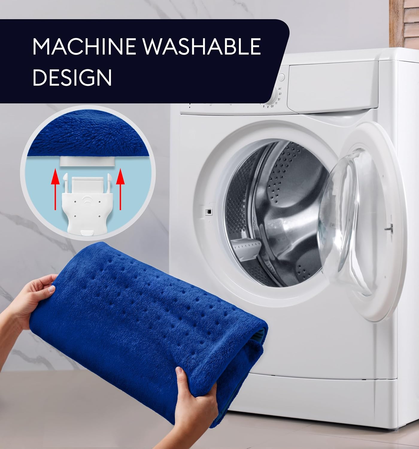 - ✅EASY MAINTENANCE: Super easy to clean, our heating pad for bed is machine washable. Simply unplug and toss right in for a thorough cleansing before next use! You can also spot clean using a damp washcloth with mild detergent. Sanitizing has never been easier! The heating pad auto shut-off ensures your peace of mind after each use. No need to worry about forgetting to unplug!