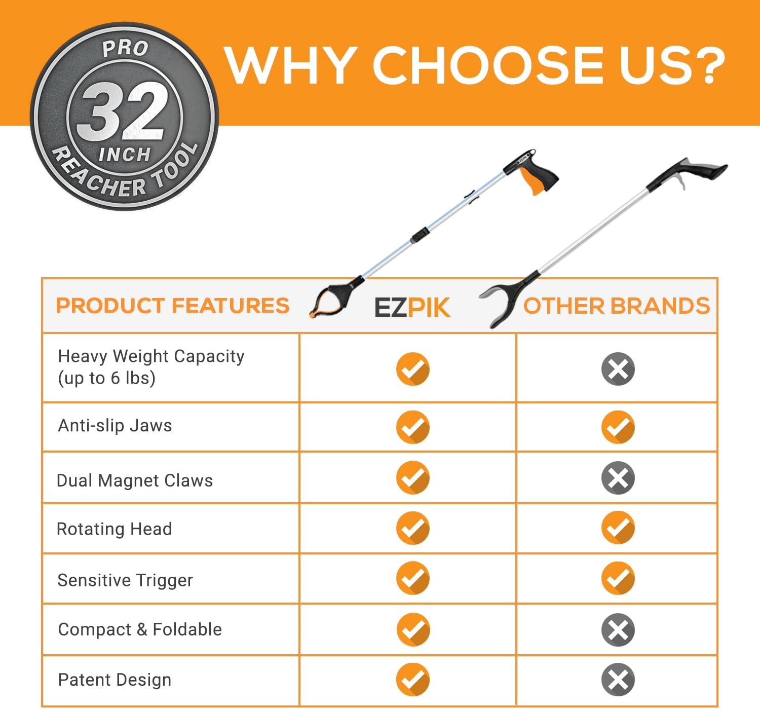EZPIK Pro 32" Foldable Grabber Reacher Tool for Seniors - Grabbers for Elderly Reaching Tool Heavy Duty Pickup Trash Picker Upper Equipment - Claw Grabber Stick for Reaching Aids, Weed Gripper