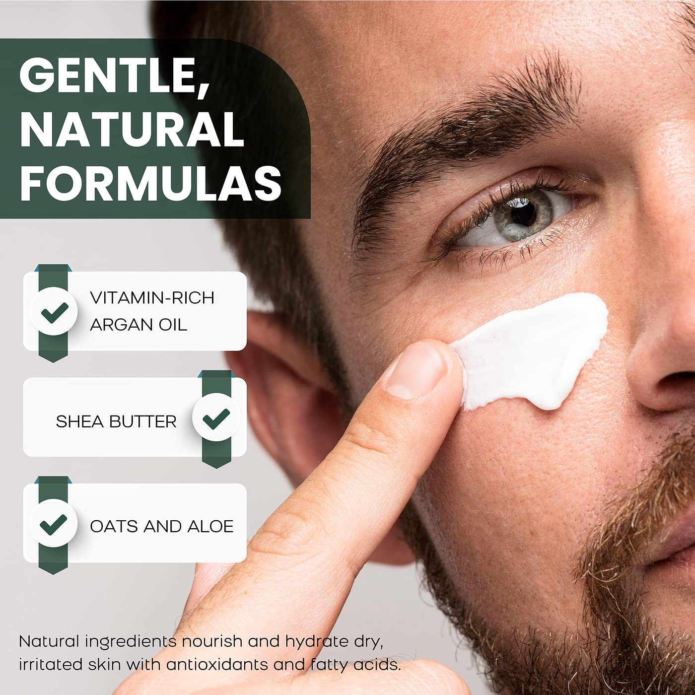 - SOOTHING & PROTECTIVE: Soothe and protect freshly shaved skin with this aftershave balm for men. Infused with aloe, oats, shea butter, and argan oil, this aftershave for men sensitive skin eases irritation, reduces redness, and defends against free radicals. Say goodbye to post-shave discomfort with this after shave cream for men!