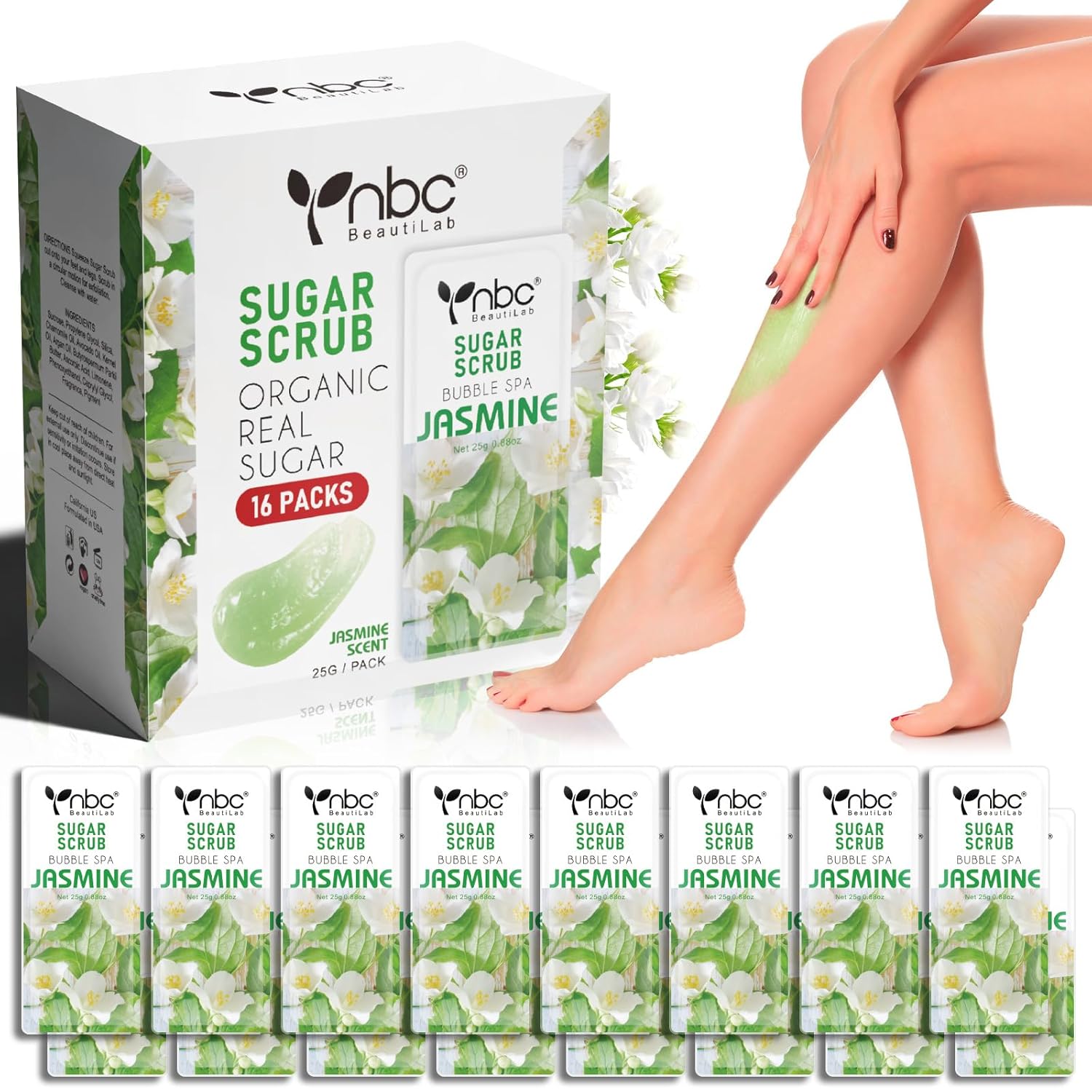 Foot Exfoliating Scrub, Sugar Scrub, Dead Skin Remover for Feet, Individually Packaged Foot Scrub Smooths, Hydrates, Detoxifies Tired and Dry Cracked Feet 16 Packs per Box, Jasmine