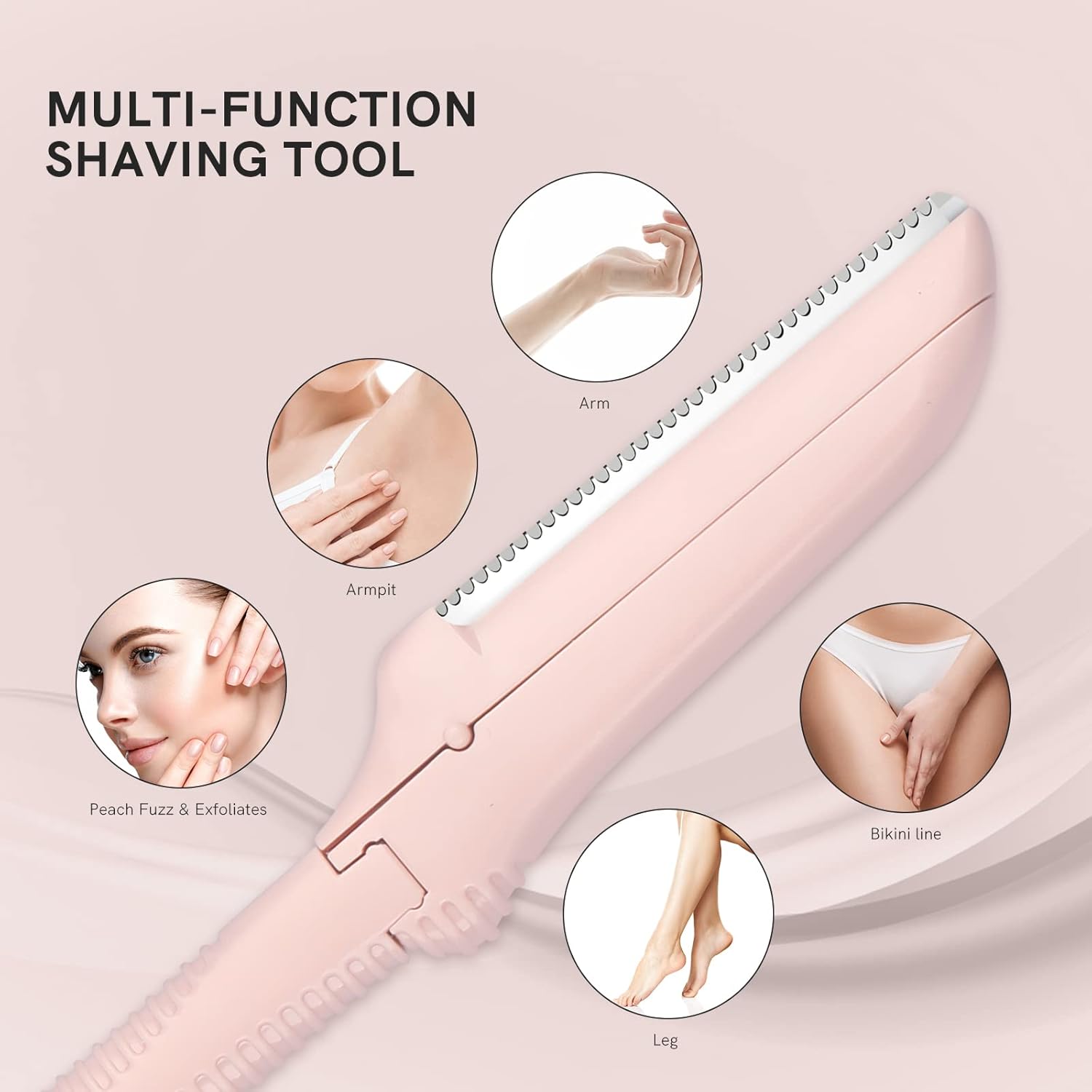 - SENSITIVE SKIN SUITABLE: Our face shaver's blade is treated with Teflon making it hypoallergenic, perfectly to trim sensitive areas around the eyebrows, upper lip, bikini lines.