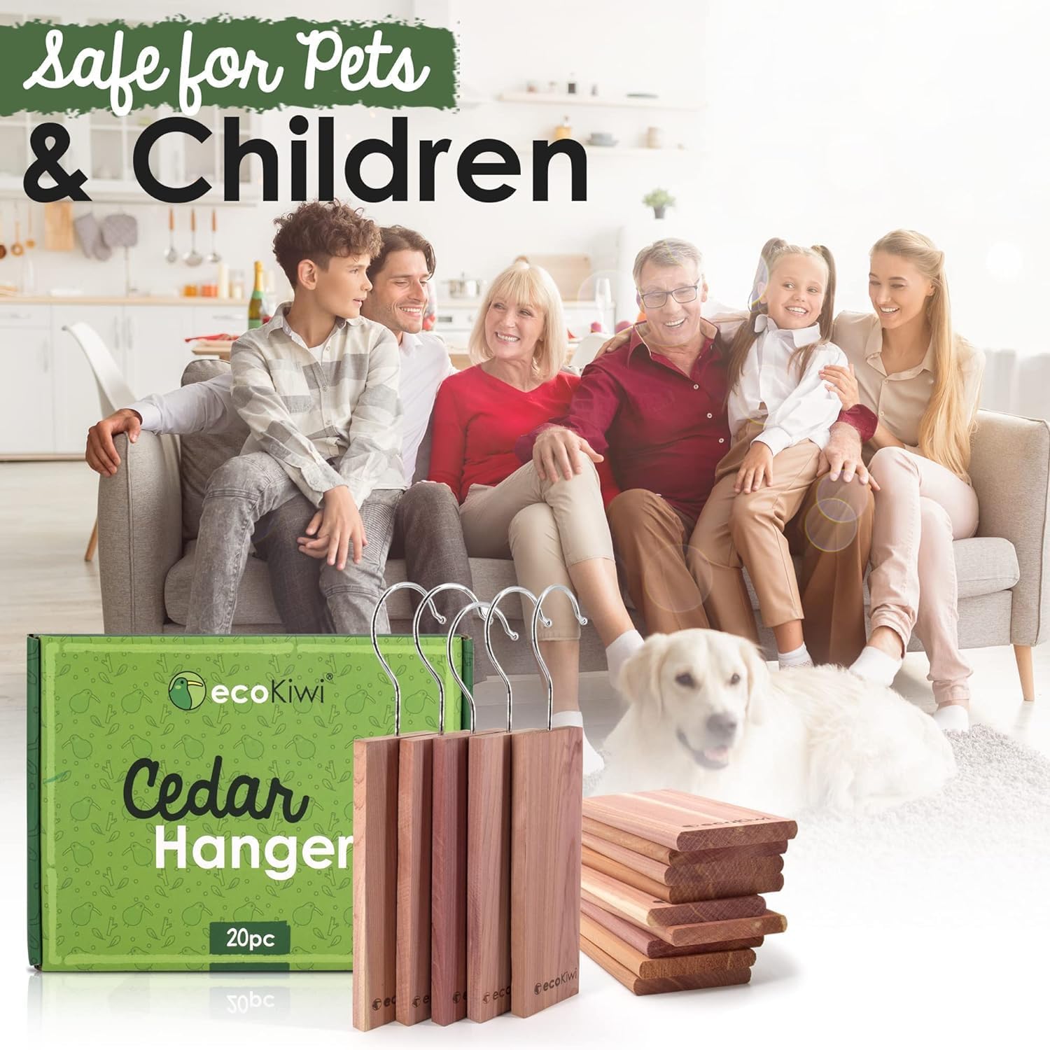 - PROTECT OUR PRECIOUS PLANET - At ecoKiwi, we were tired of seeing excess waste and unsustainable products, so we created our cedar planks for closets to be long-lasting and sustainably sourced. Our cedar closet hangers eliminate the need for any chemicals or plastics to be used. Just pure, sustainable and effective eastern red cedar chips for storage. Join the eco friendly revolution with our cedar blocks for closet products.